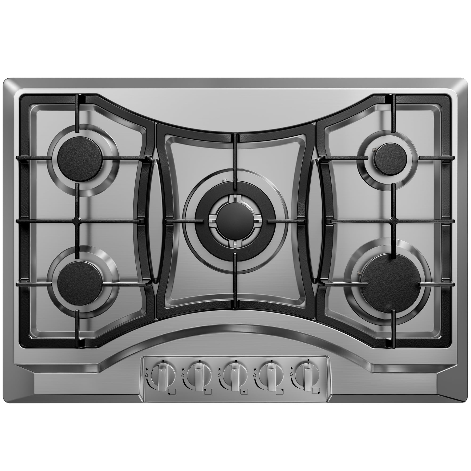 30 inch Drop-in Gas Cooktop with 5 Sealed Burners, Stainless Steel Gas Stove, Dishwasher Safe Cast Iron Grates