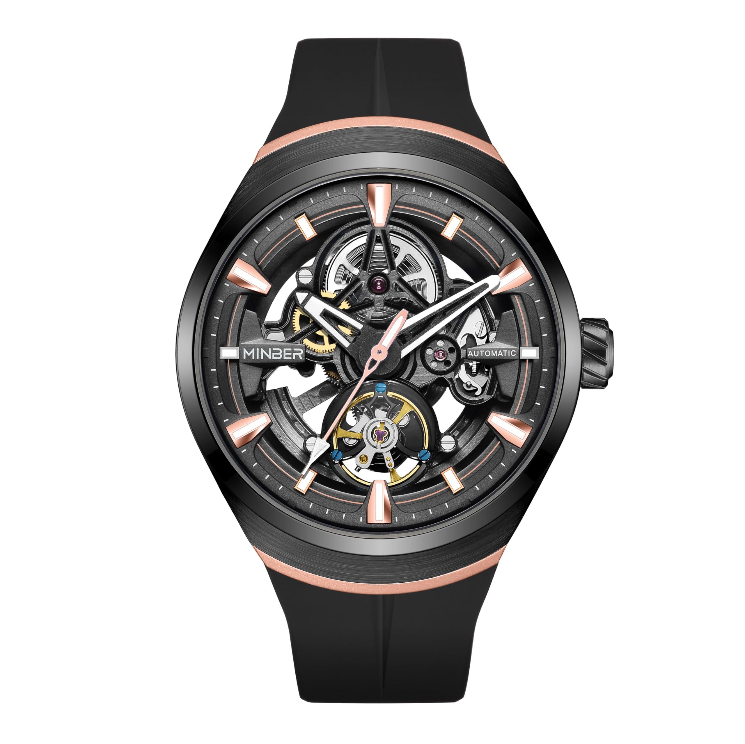 44mm Automatic Mechanical Watches for Men, Skeleton 30M Waterproof Design, Transparent Front