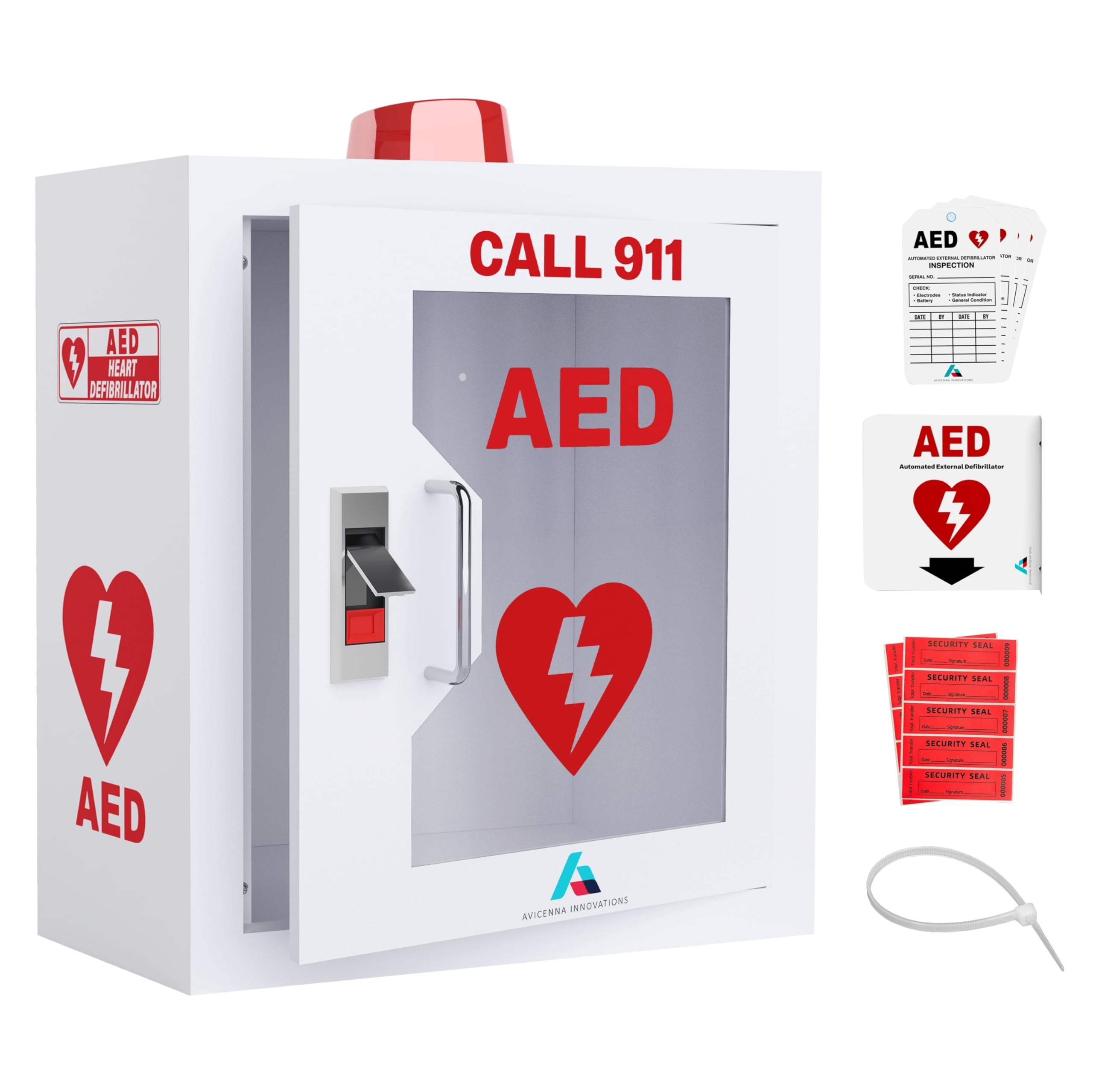 All-in-One AED Cabinet Kit – Wall-Mounted Steel AED Storage Box with Snaplock, Alarm/light NOT Included