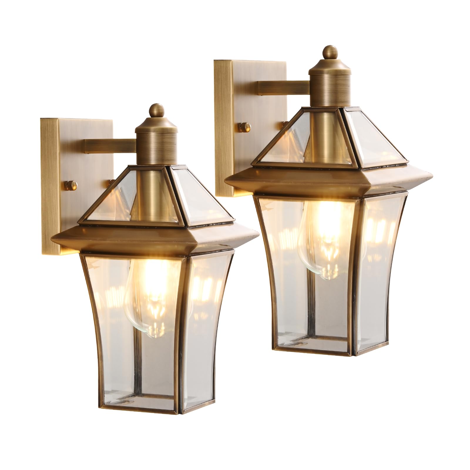Waterproof Brass Outdoor Wall Lanterns (2-Pack), E26 Socket & Glass Shade Exterior, Rustproof Modern Sconces