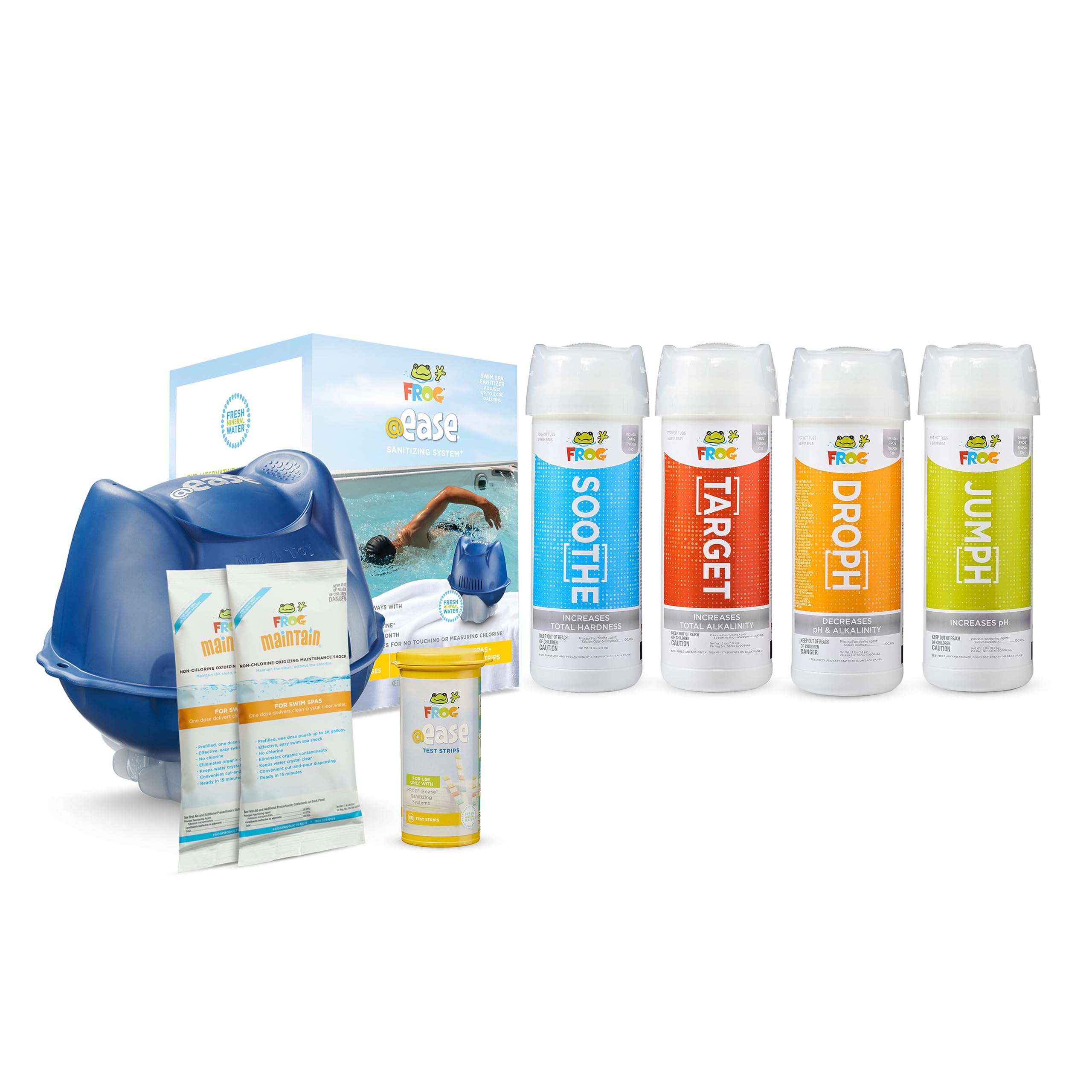 Floating System and Balancing Starter Kit for Swim Spas with 2 Packs of FROG Maintain, Self-Regulating Sanitizer