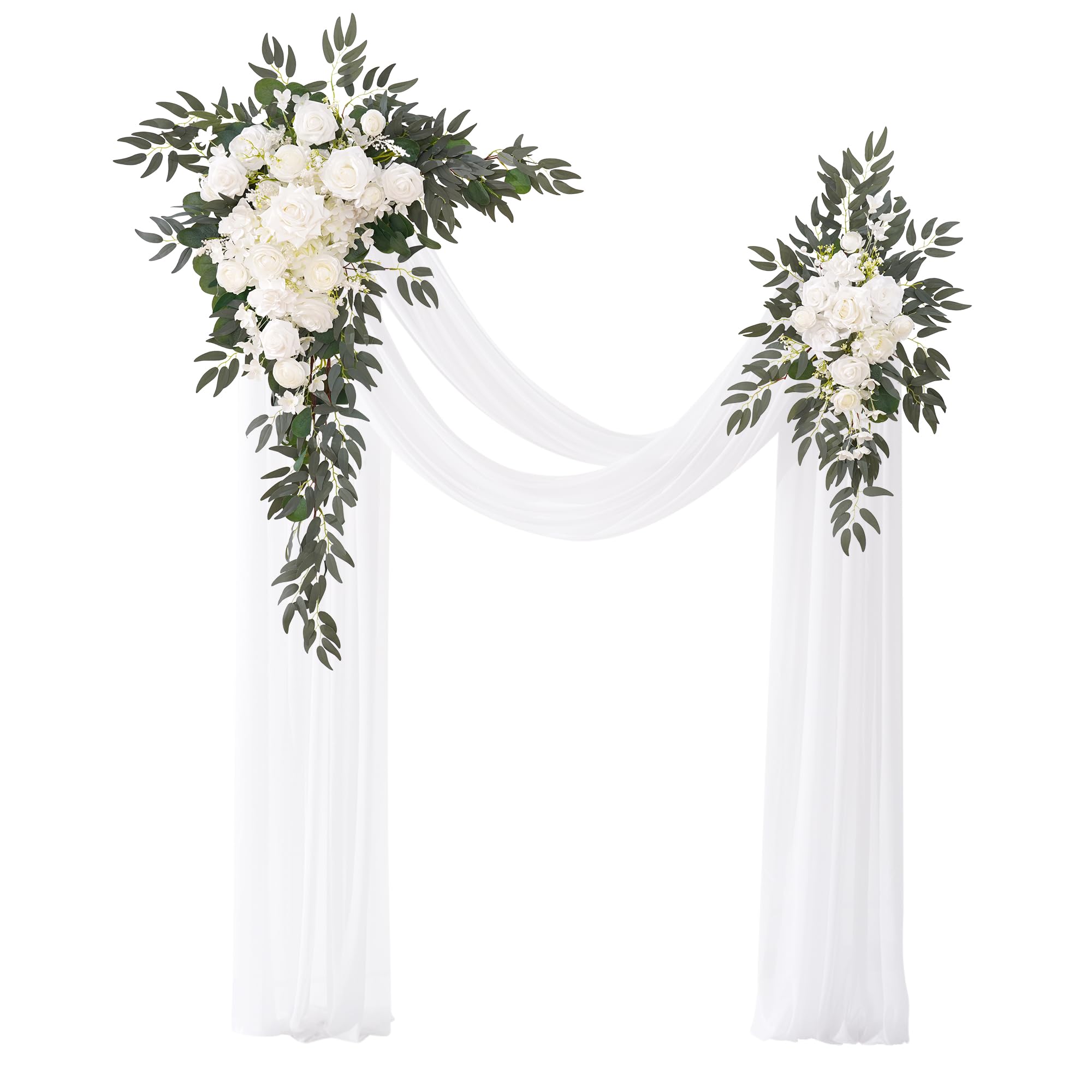 Deluxe Wedding Arch Flowers with Drapes Kit Pack of 4, 2pcs White Sage Hanging Silk Flowers