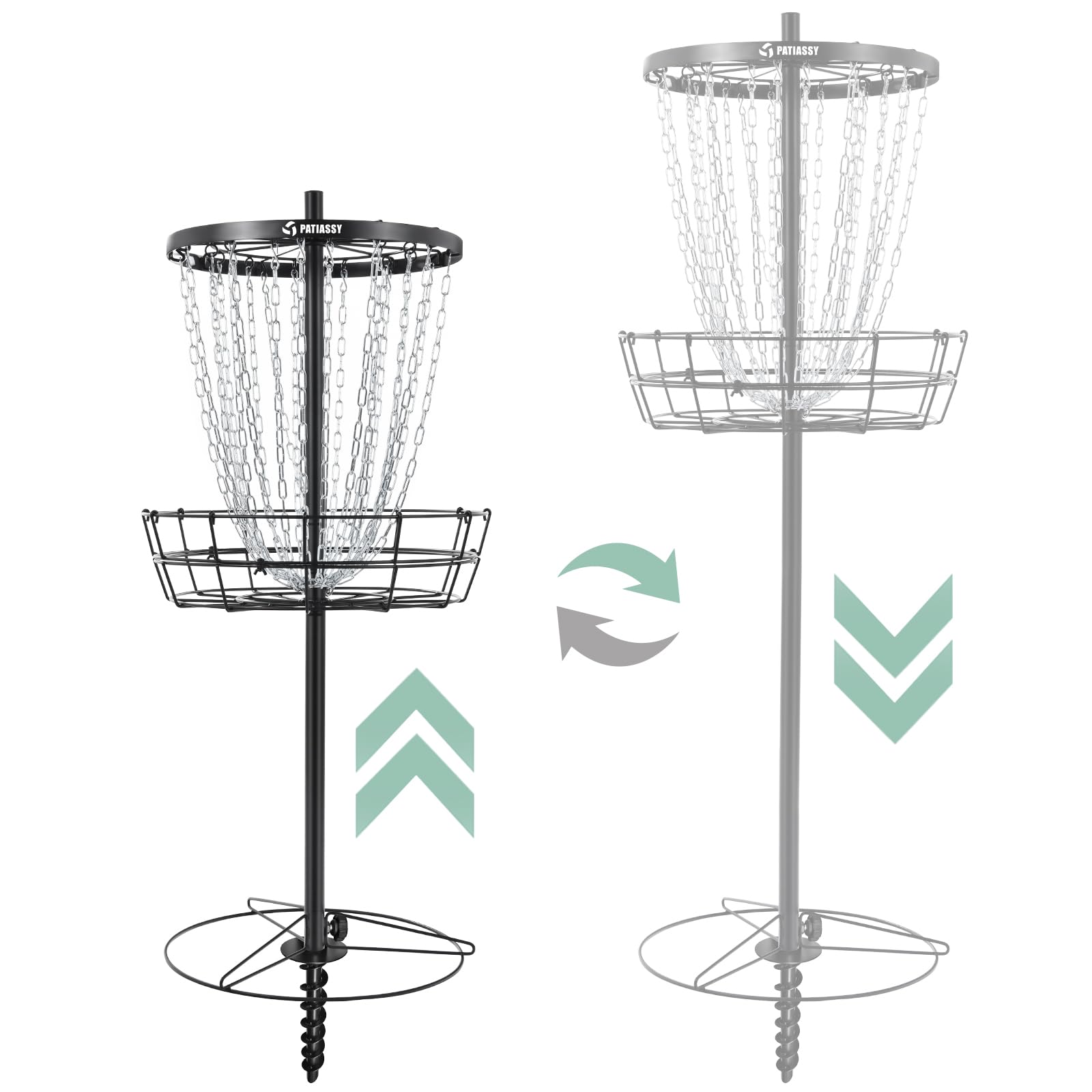 Disc Golf Basket with 24/12 Heavy Duty Chains, Portable Disc Golf Target with Adjustable Height, with Ground Stake