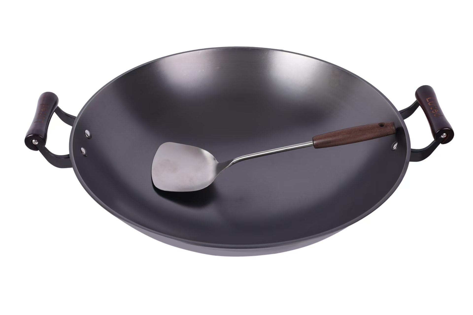 Chinese woks with a lid and a Spatula, 18.11" Round Bottom Pot Uncoated for Open Fire not easy to rust not easy to stick