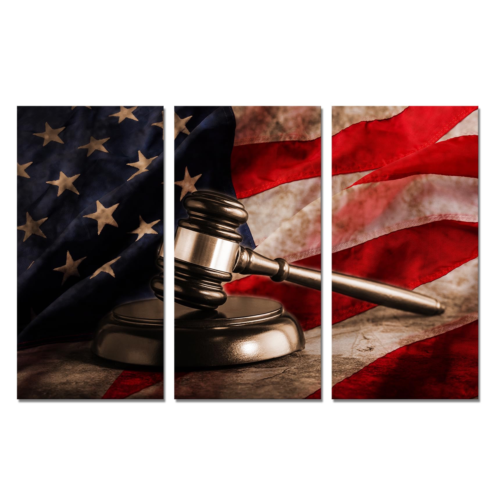 3 PCS Vintage Law Wall Art Judge Hammer Canvas Print, Picture American Flag Law Office Artwork