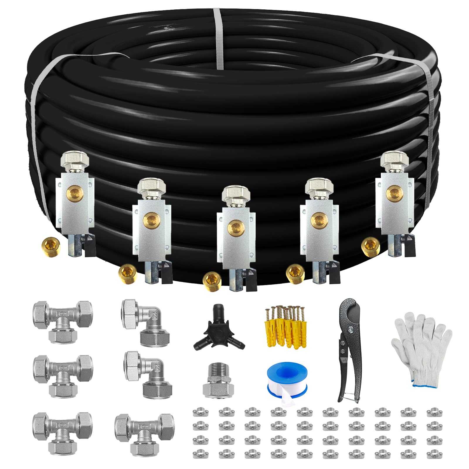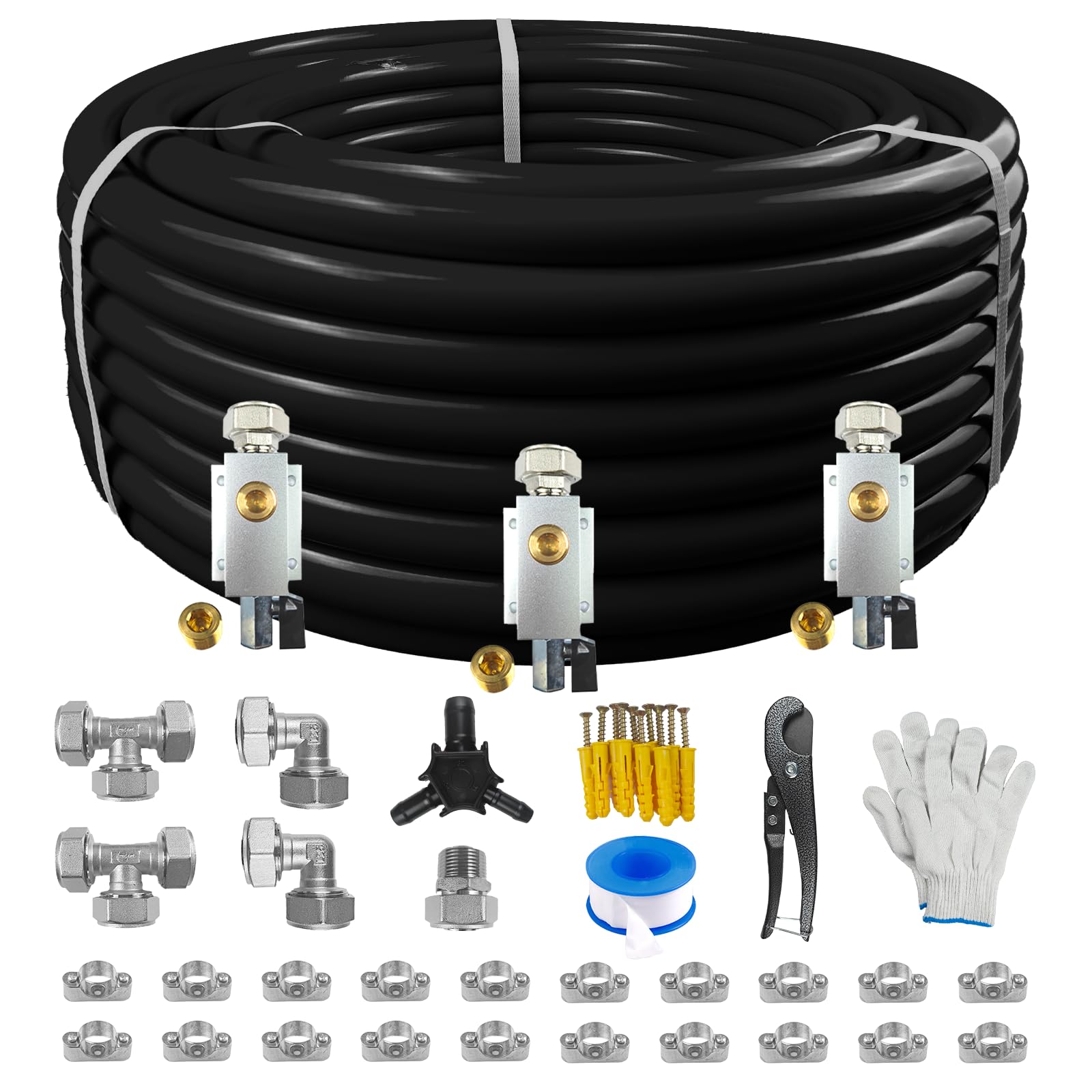 Compressed Air Line Kit, 3/4" x 120ft HDPE, Aluminum-HDPE Piping, Air Line Hose, Accessories and Airline Tubing(Black)