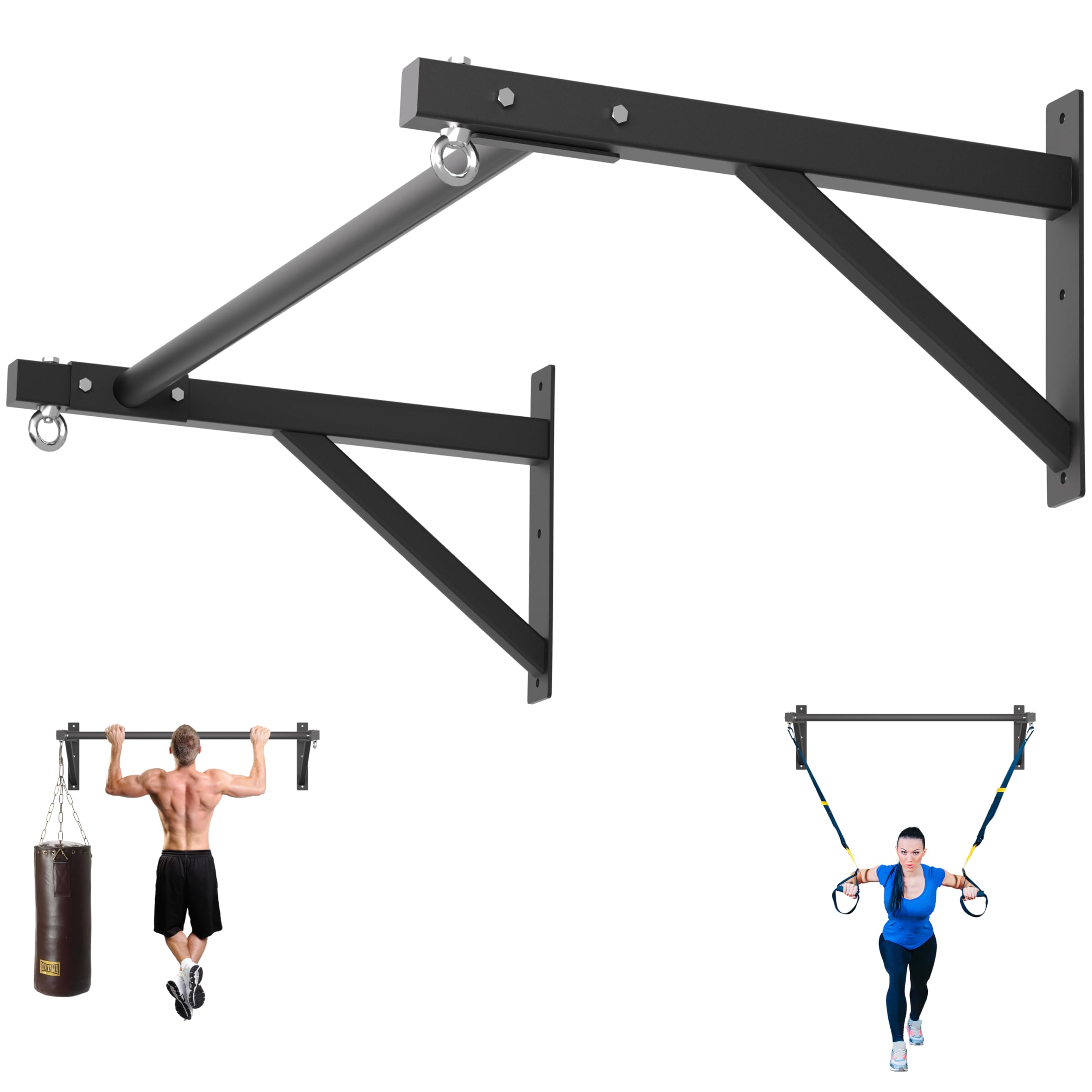Pull Up Bar Wall Mounted, Heavy Duty 650 lbs Capacity Chin Up Bar, 48" Multi-Grip