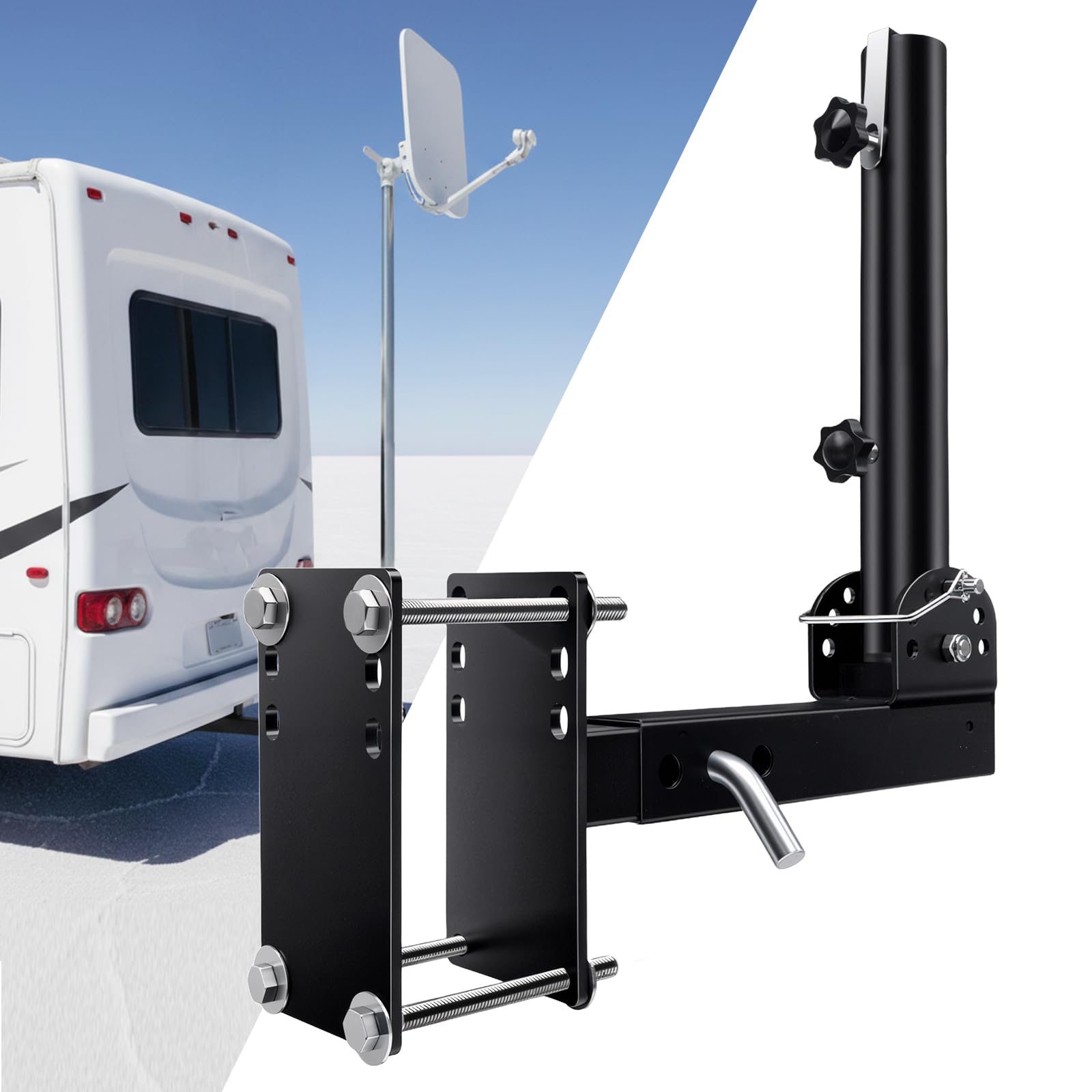 Heavy Duty Adjustable Flag Mount for Travel Trailers & Campers, Universal Fit for 1" to 1.5" Flag Poles, (Black)