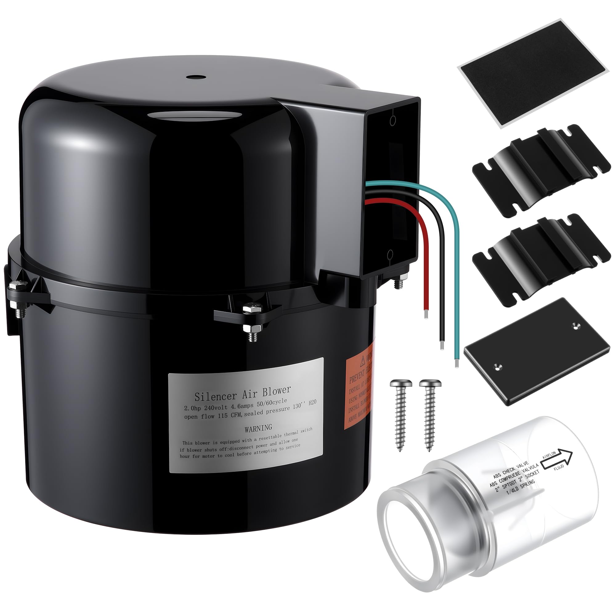 6316220F Portable Spa Blower 2 Horsepower 240 Volt, Anti Clog Design Pool Blowers, Fits 2" Plumbing