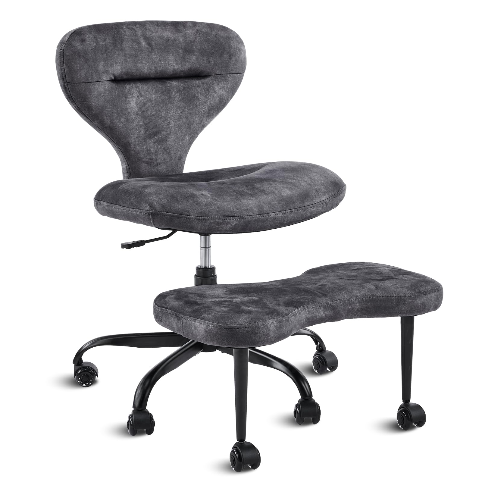 Ergonomic Cross Legged Office Chair and ADHD Meditation Chair w/ Silent Wheels, Storage Pockets, Velvet Fabric, Grey