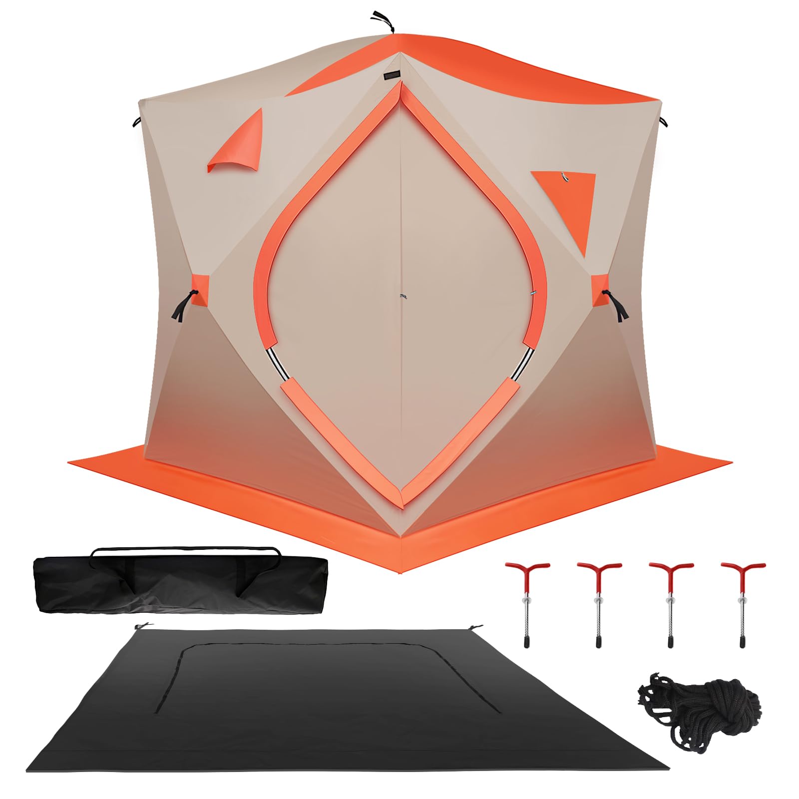 3-4 Person Ice Fishing Tent, Portable Ice Fishing, Oxford Fabric Waterproof Foldable, Insulated, 180x180x200cm