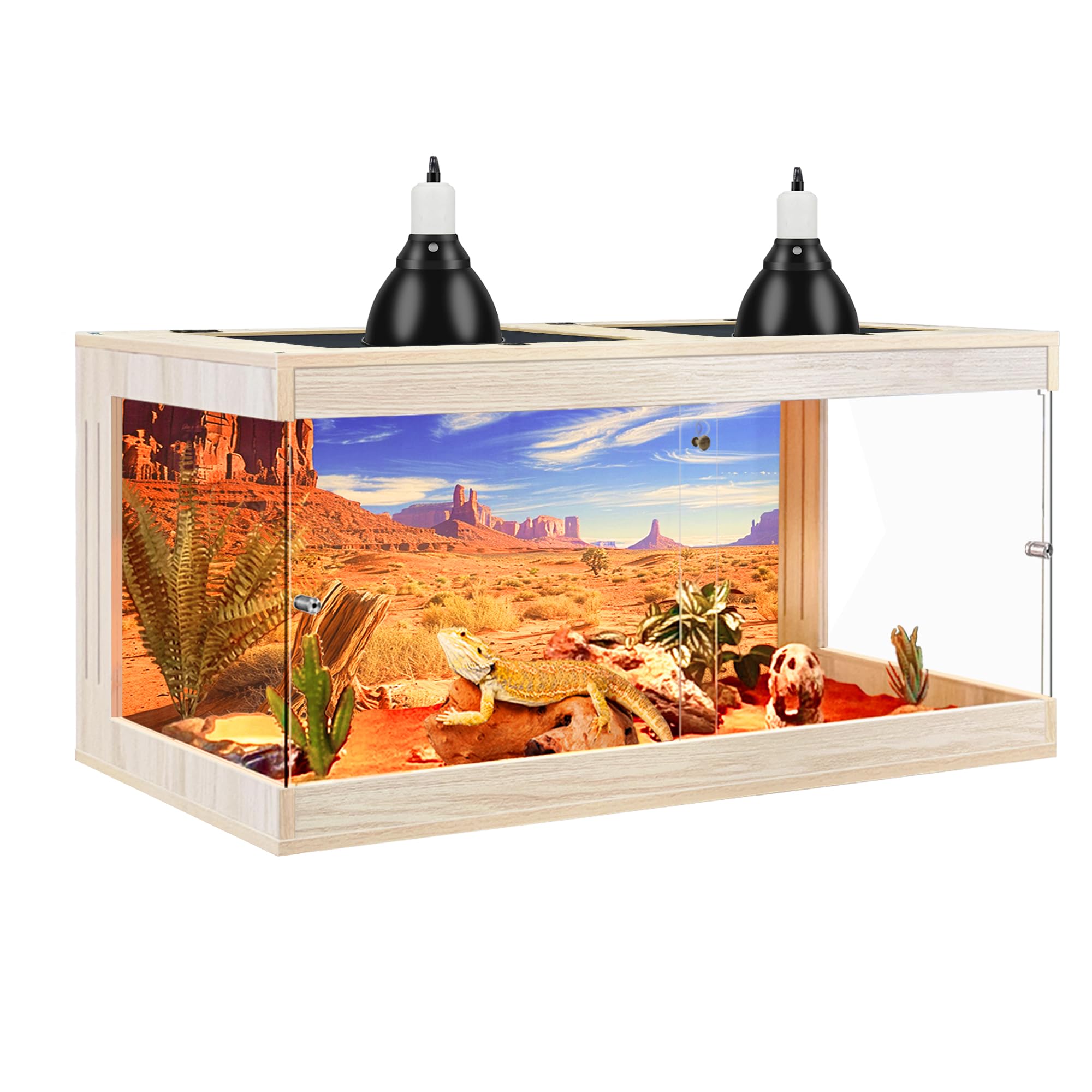 Bearded Dragon Tank, Tempered Glass, Terrarium with Metal Mesh Top, 3-Side Clear Anti-Scratch Glass, Oak,60 Gallons
