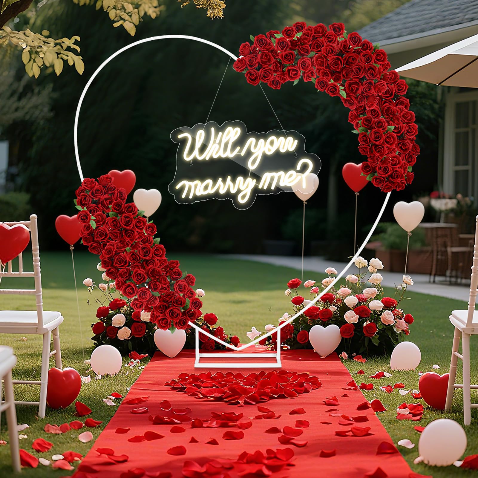Large Will You Marry Me Me? Neon Sign Backdrop Wedding Proposal Decorations for Outdoor, (Red Carpet, Petals)