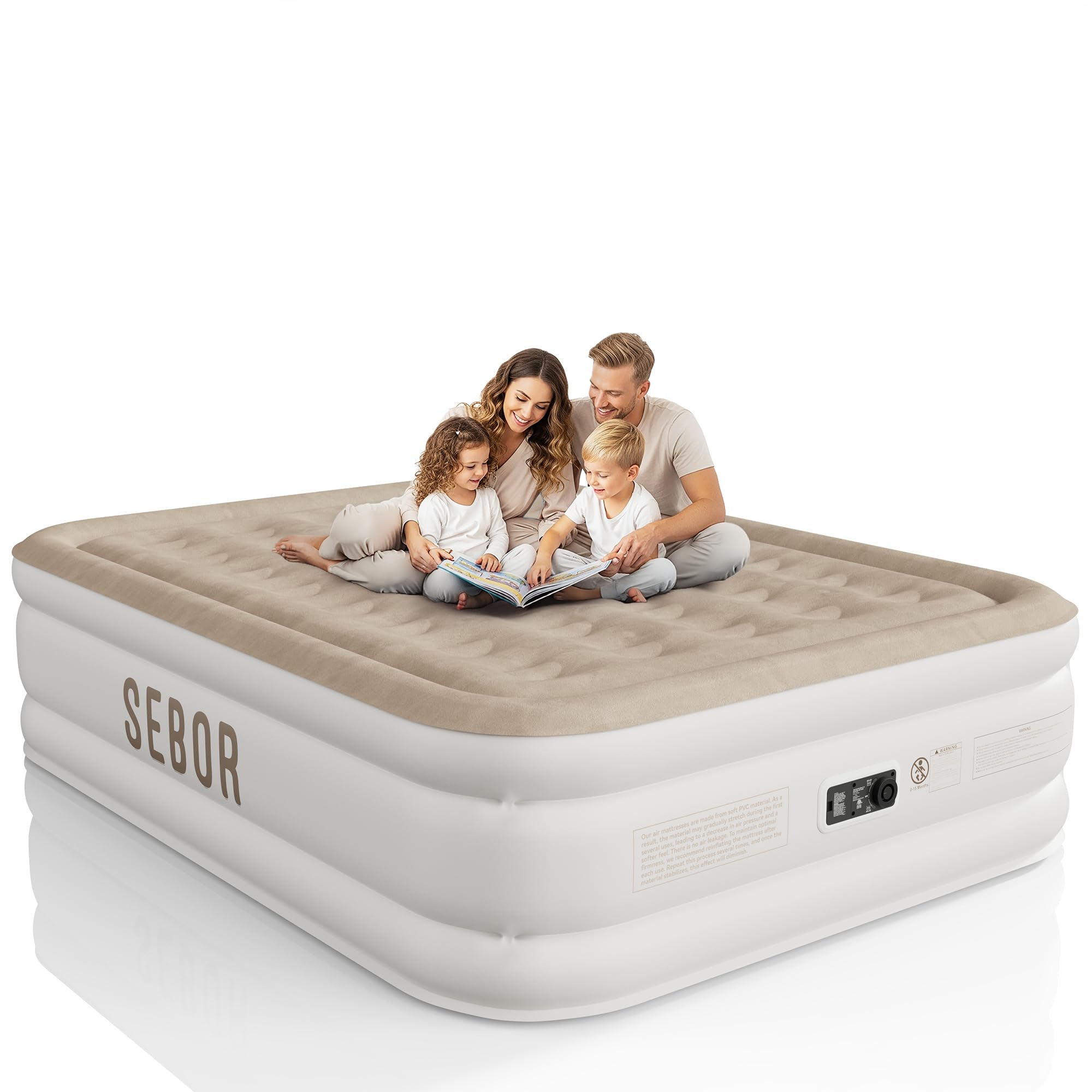 Air Mattress Queen with Built-in Pump 18", Self-Inflating, with Storage Bag for Guests, Camping, Travel