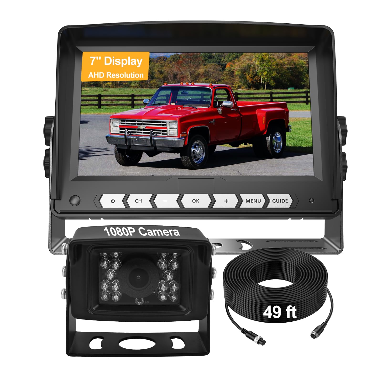 Wired RV Backup Camera with 7" Monitor - Rear View Camera System, Night Vision, Hitch Assistance