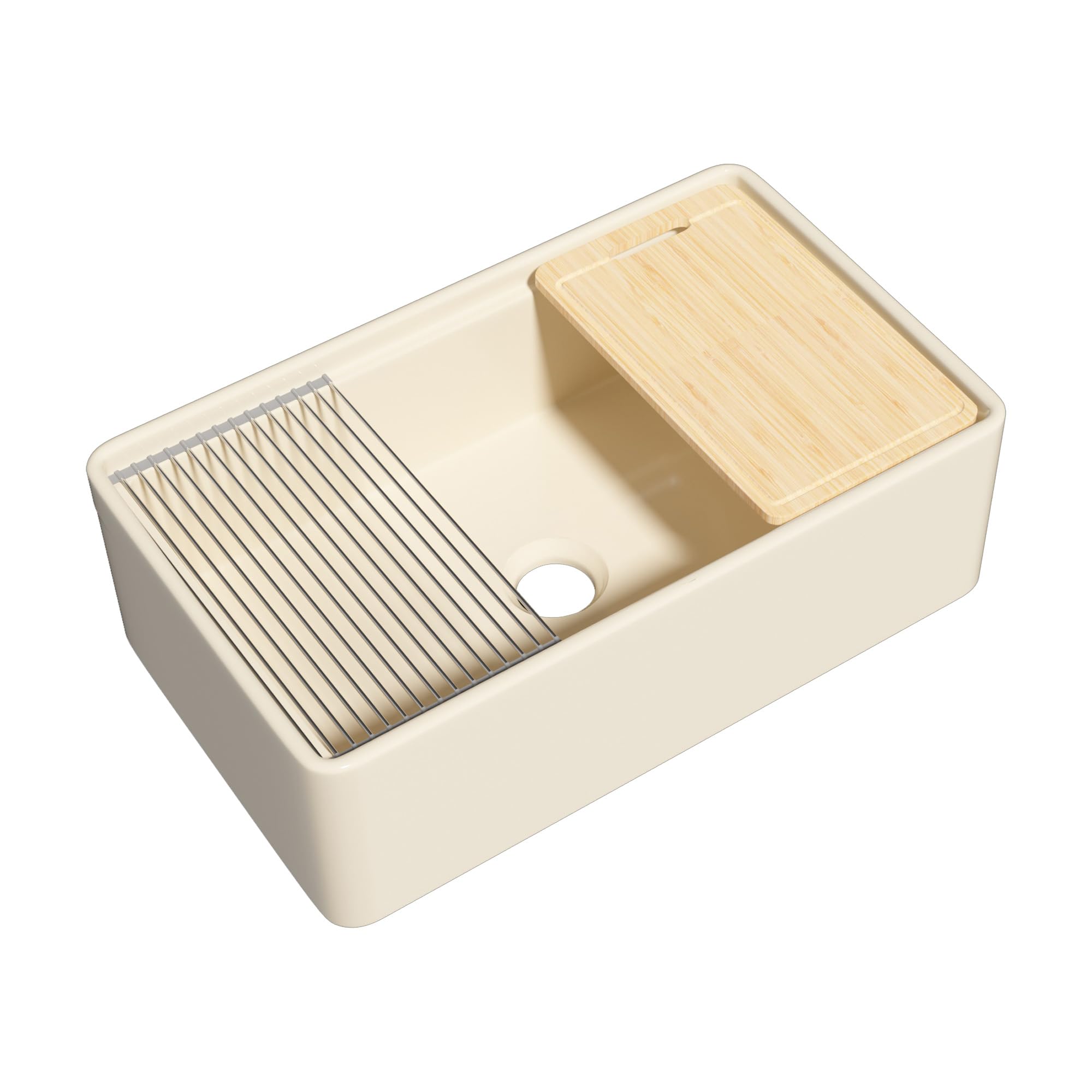 Firecaly Farmhouse Workstation Sink 33 x 20 Inch Bone Color, Apron Front Undermount, Single Bowl, Deep Basin