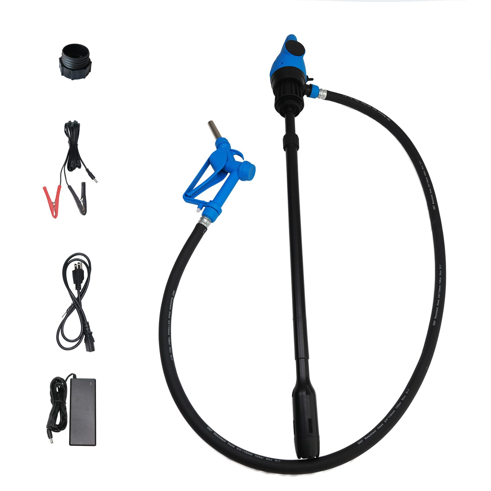 Electric Drum Pump 120V AC,12V DC, 5 GPM flow fuel, diesel, water, antifreeze, 6.6ft hose, 2-inch bung adapter