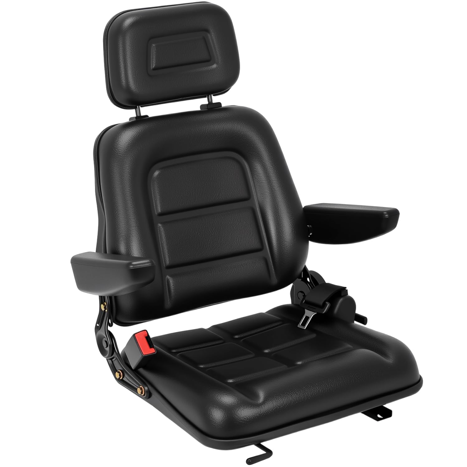 Universal Tractor Seat, Adjustable Lawn Mower Forklift Leather Skid Steer Seat w/ Adjustable Back Armrest Headrest