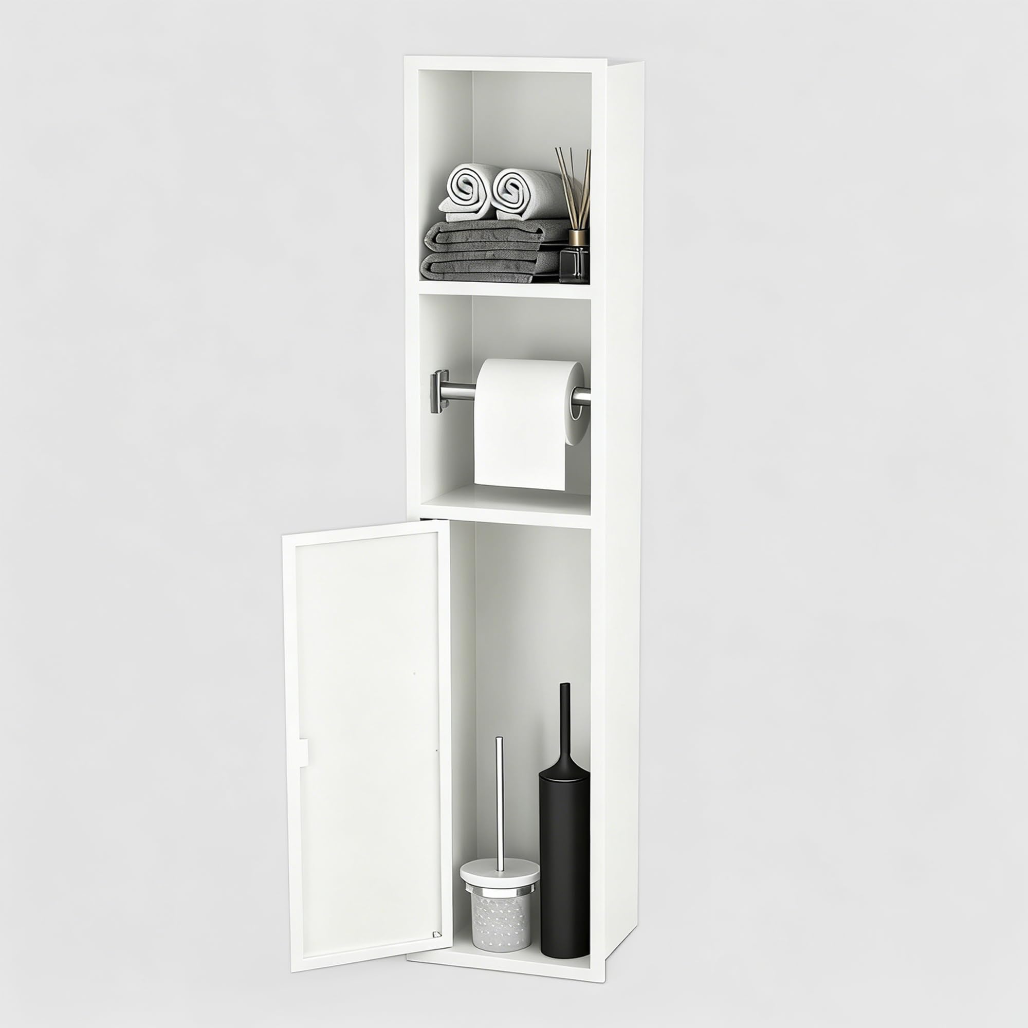 Recessed Toilet Paper Holder Brushed Nickel with 3 Storage White Stainless Steel, for Toiletries Toilet Brush, Paper Holder