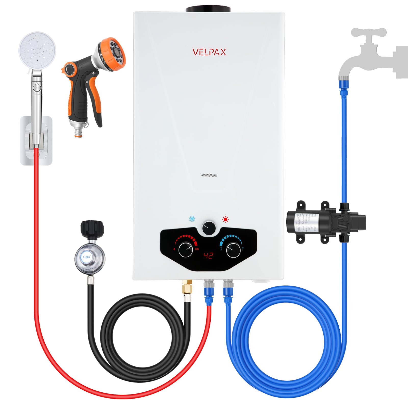 Tankless Water Heater Propane,2.64GPM 10L Outdoor, with 2 GPM Water Pump, Digital Display Multi-Protection