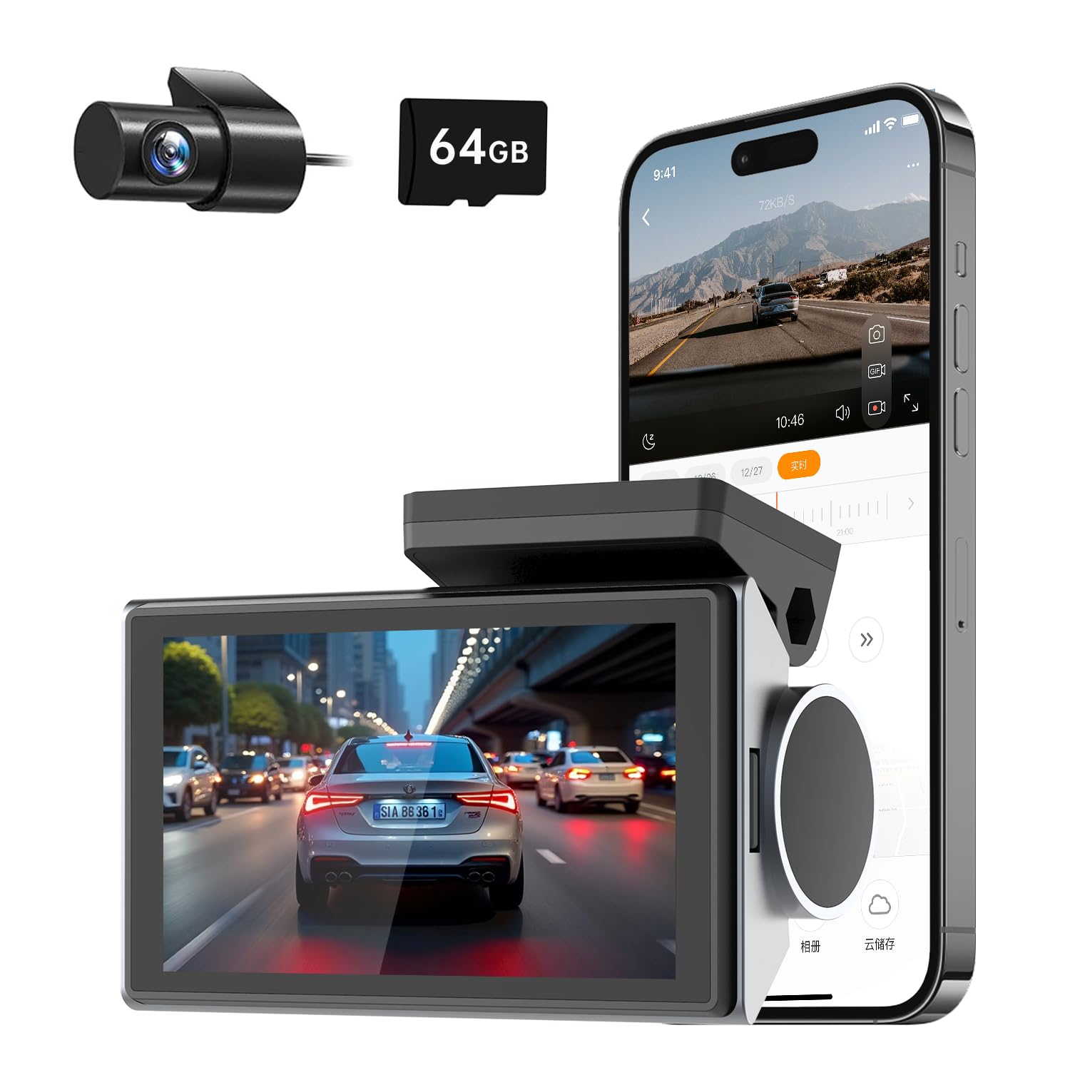 Dash Cam Front Rear, 4K/2K Full HD Dash Camera for Cars, Included 64GB Card, Night Vision, Wide Angle, Parking Mode