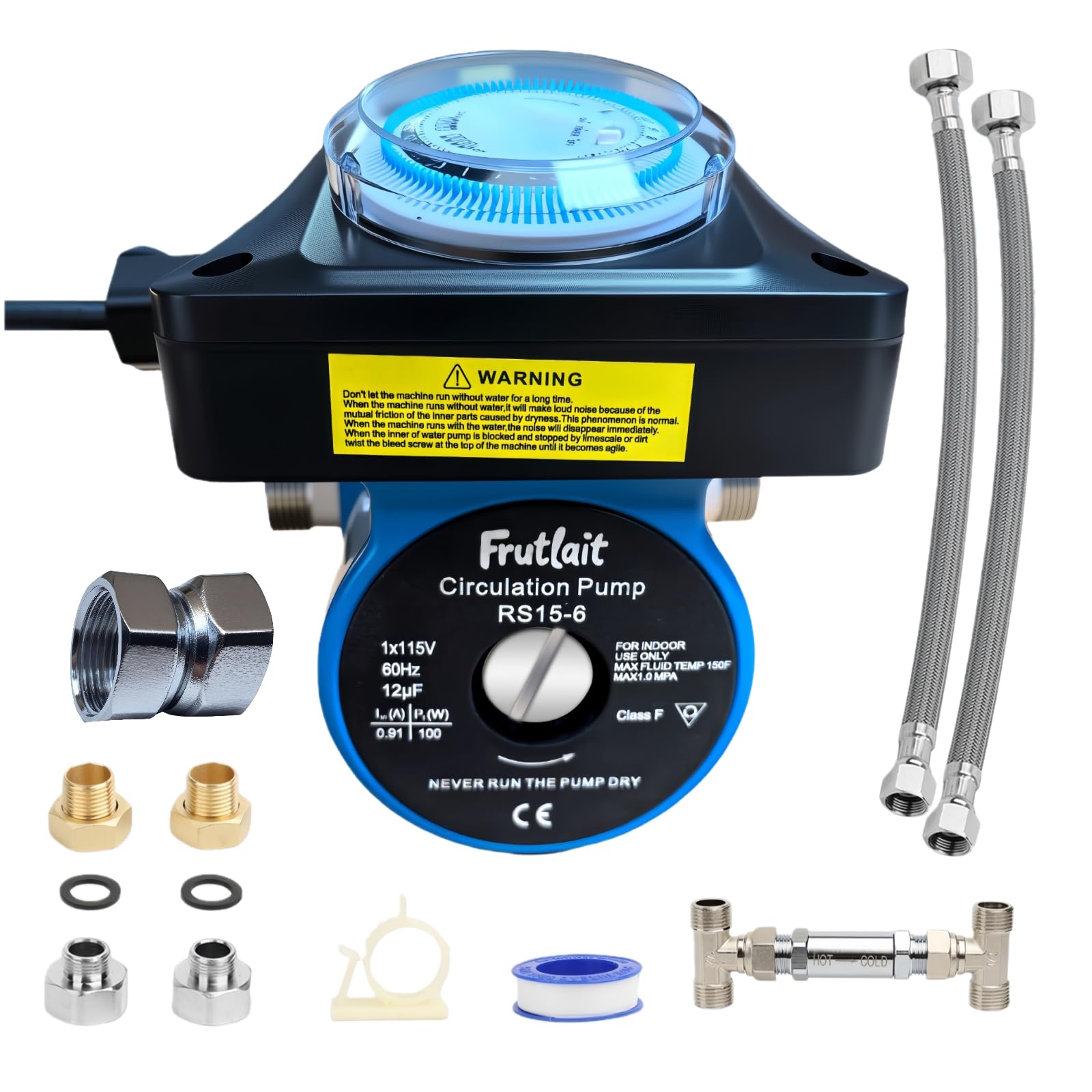 Hot Water Recirculating Pump with Programmable Timer, 304SS Sensor Valve, with 2 Adapters, 2 Supply Lines