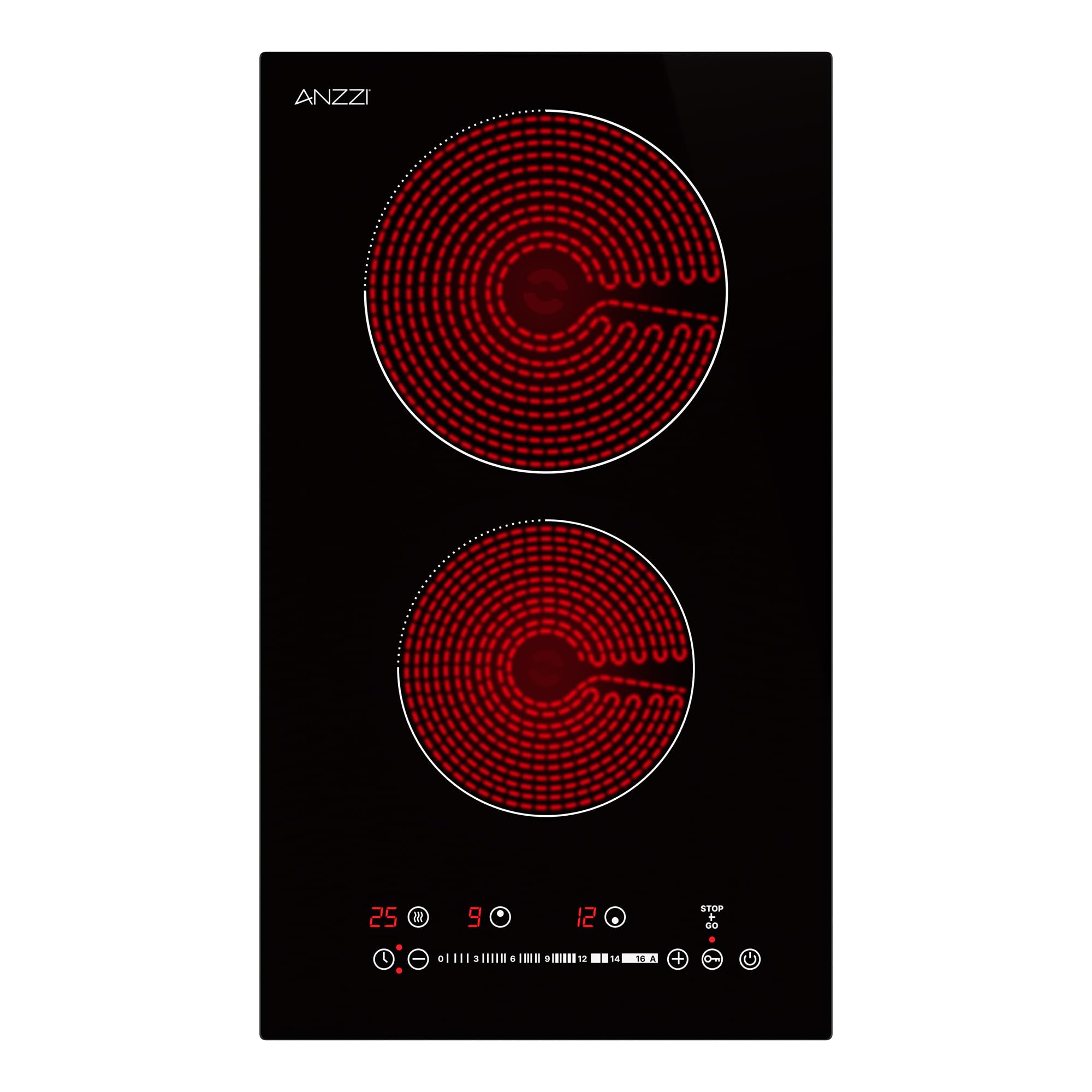 12-In. Electric Cooktop in Black Glass with Dual-Zone Control, Radiant Heating, and Ceramic Hobs for Precision Cooking