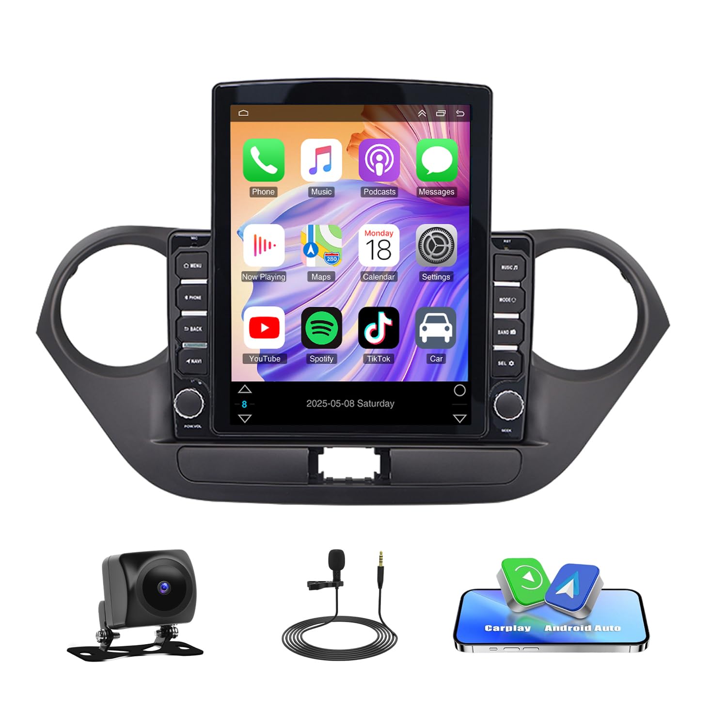 9.7inch Car Radio Stereo for Hyundai Grand I10 2014-2019, with Carplay Android, Backup Camera, Mic