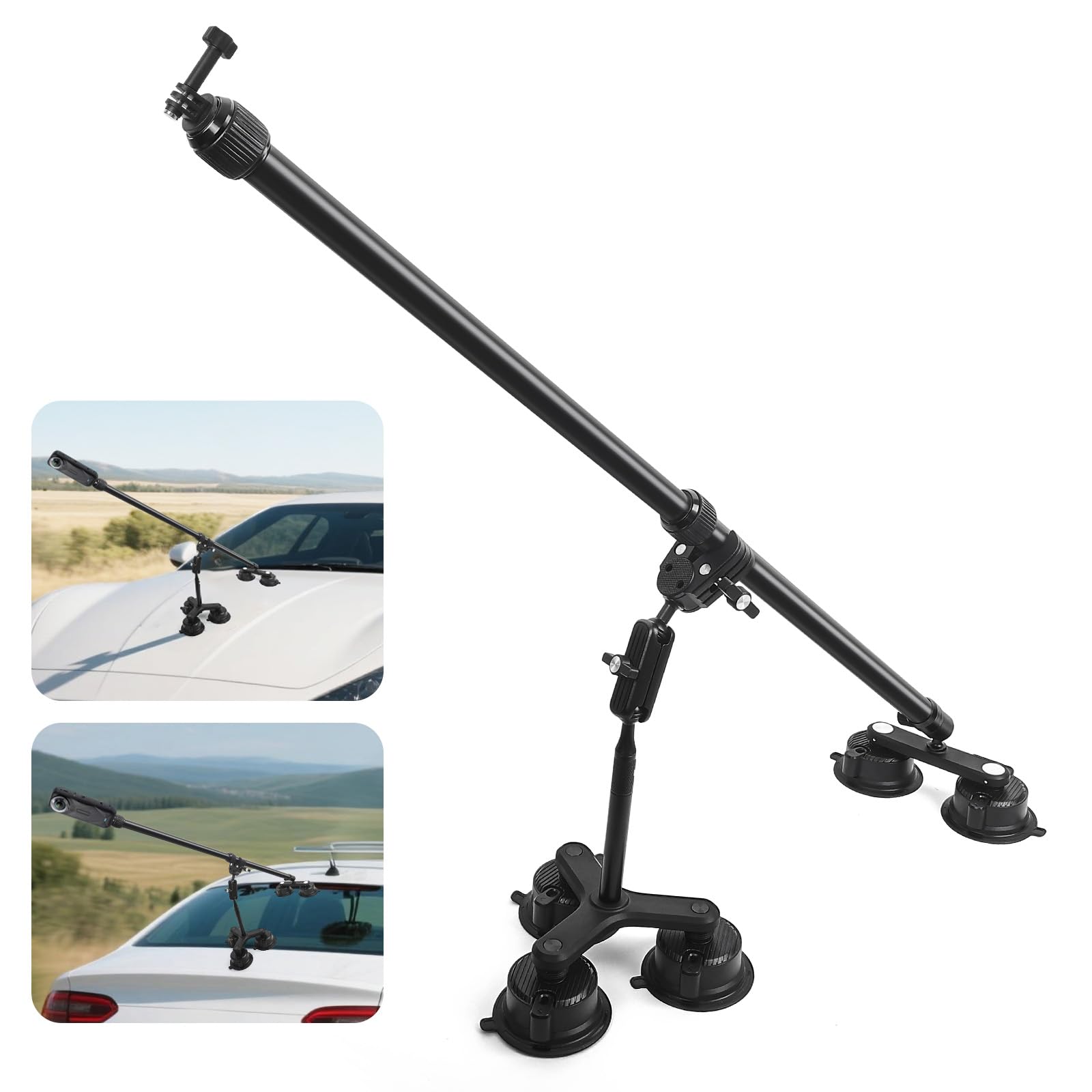 Five Suction Cup 360 Camera Car Mount Kit for Insta360, w/ 2 in 1 Extension Pole Selfie Stick, Outside Windshield Mount