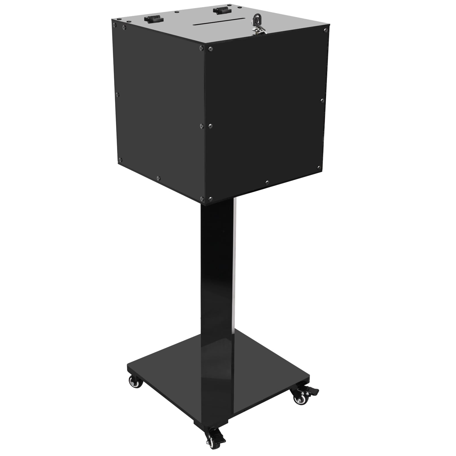 Large Acrylic Suggestion Box with Slot and Lock, With Stand for Fundraising, Church, Black