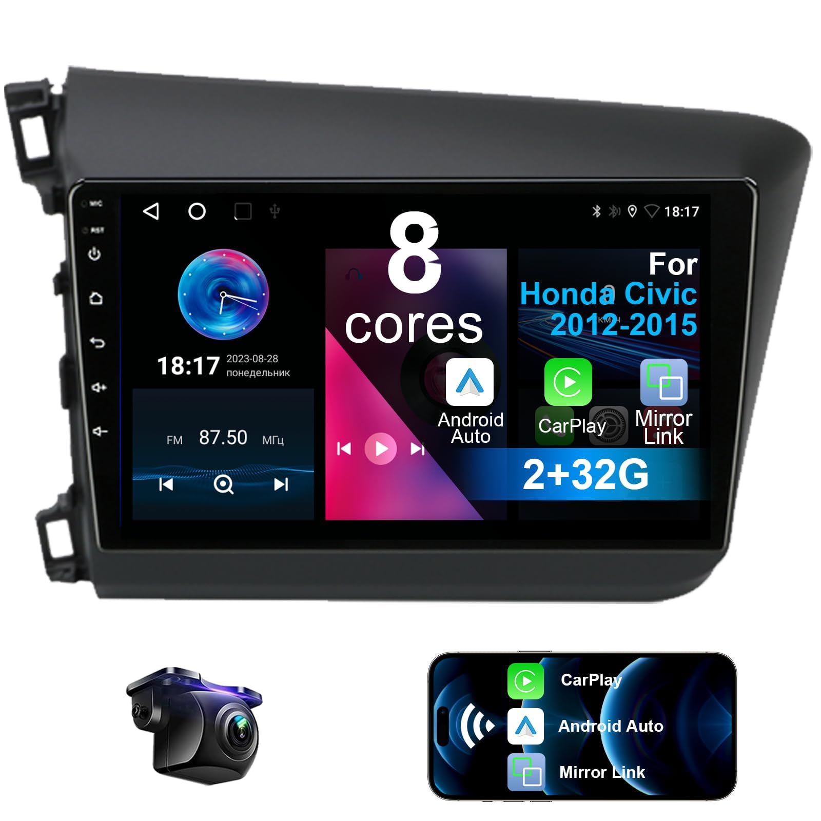 Upgraded Android 13 8 Core Car Radio Stereo for Honda Civic 2012-15 with Wireless Carplay/Android