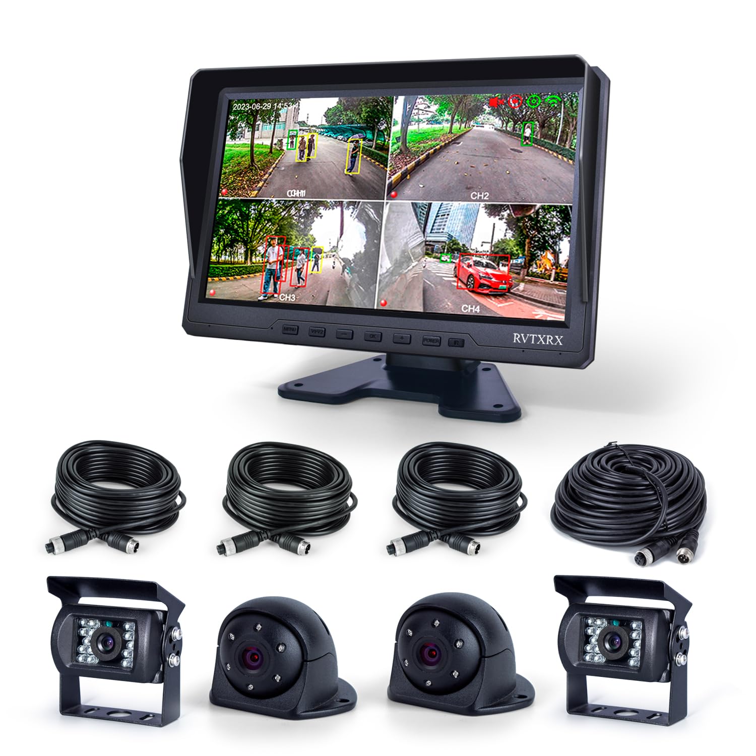 10.1 Inch 1080P AHD Quad Split Touch Screen Truck Monitor System with 4 IP69K Night Vision Cameras