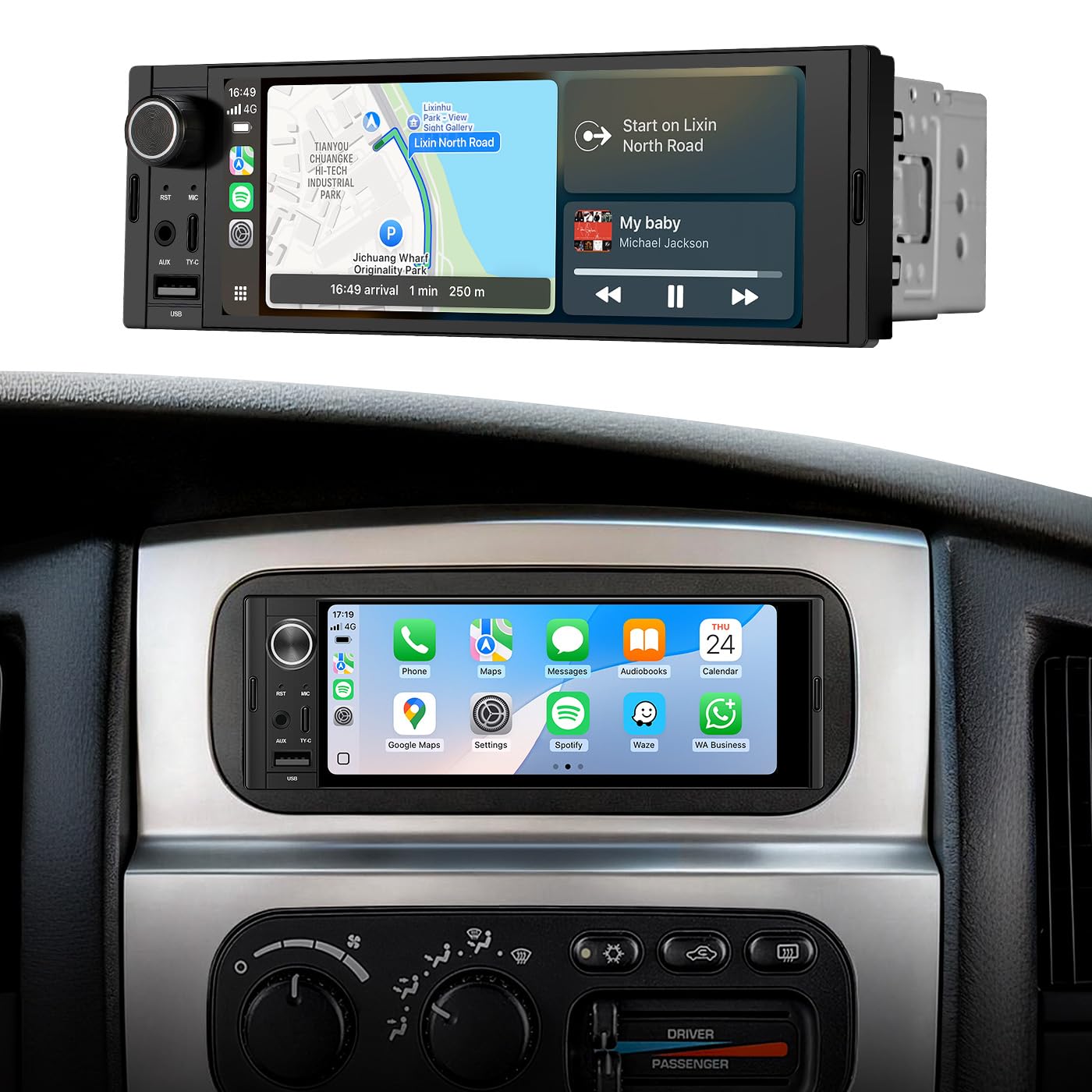 6.36" Single Din Radio Car Stereo with CarPlay and Android Auto, Universal Old Car Touchscreen, with Bluetooth