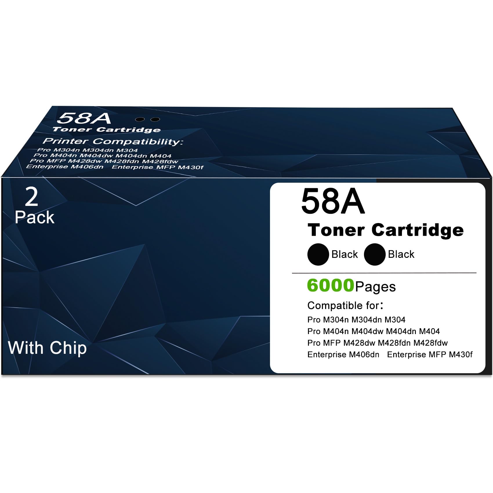58A CF258A Black Toner Cartridges Compatible for HP 58 58X CF258X LaserJet Pro MFP M428dw, (2Pack)