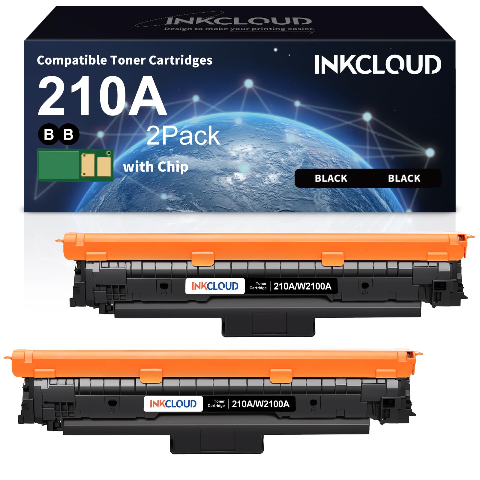 210A Black Toner Cartridge with Chip 2 Pack, for 210A 210X W2100A W2100X, for HP Color Laser