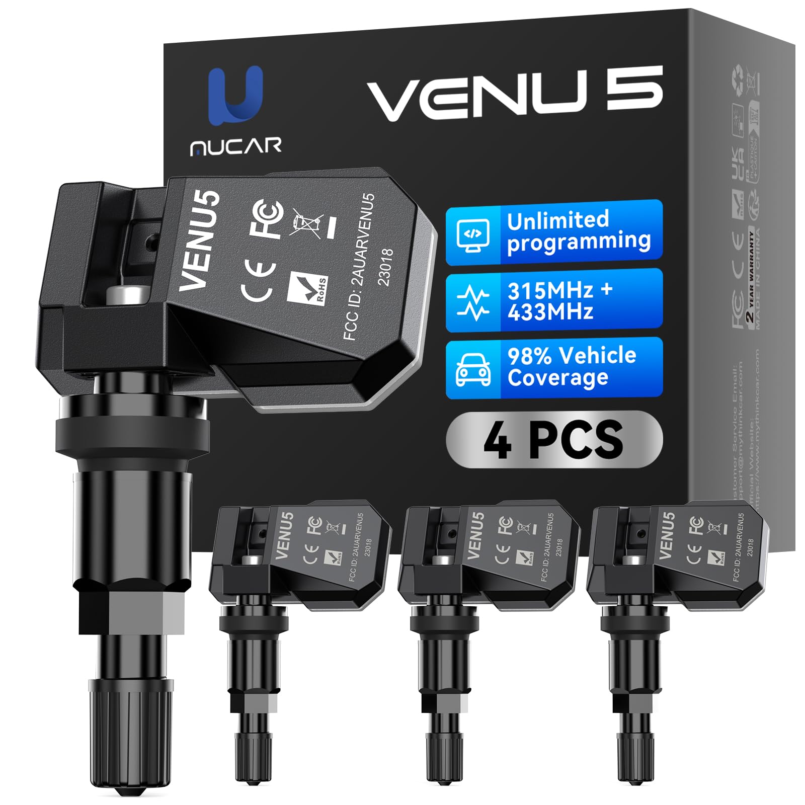 VENU5 TPMS Sensor Set of 4, Activation Relearn by Universal TPMS Tool, Tire Pressure Sensor 2-in-1