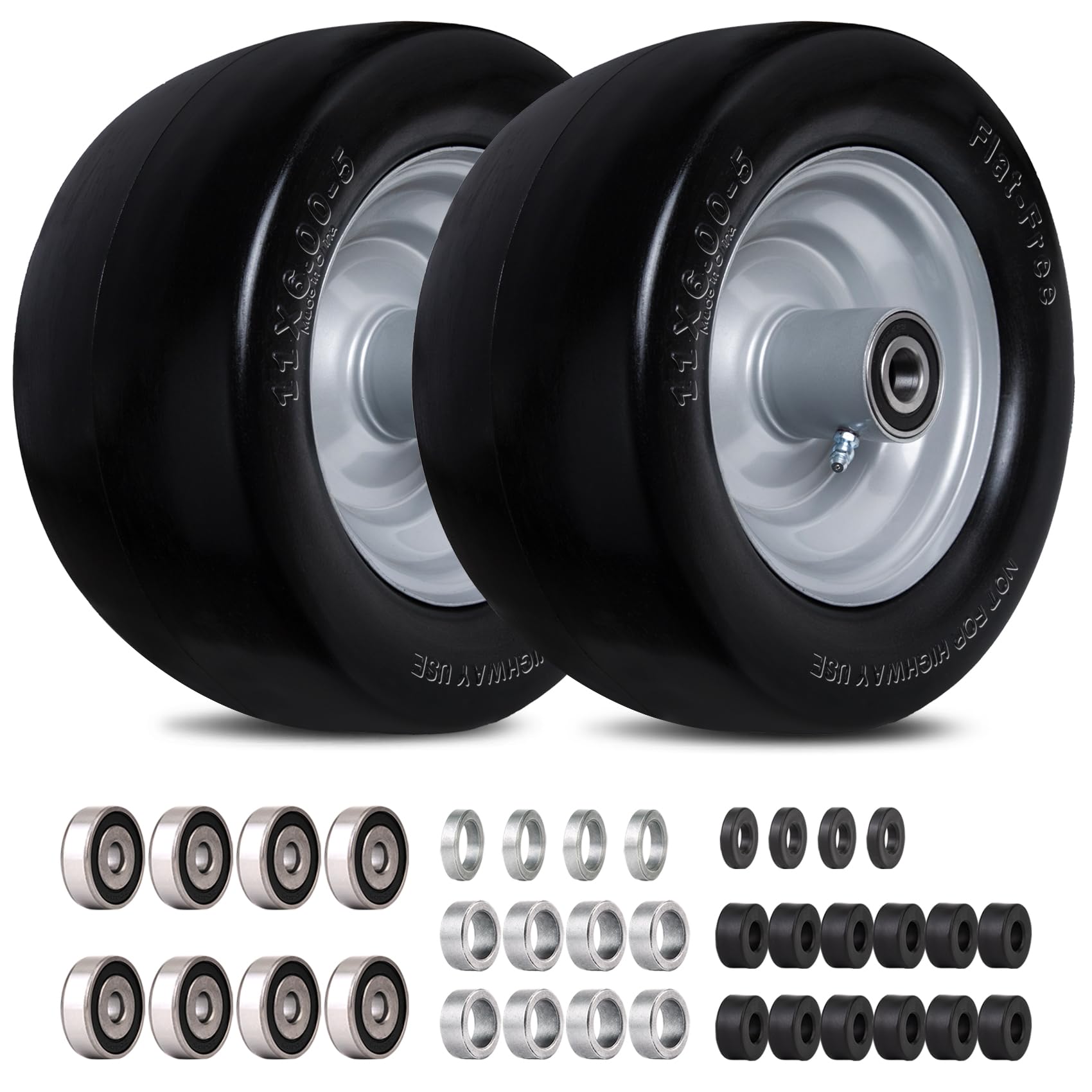 11x6.00-5 Zero Turn Flat Free Tires for Mower Front Tires with Upgraded 3/4", 5/8" and 1/2" Bearings