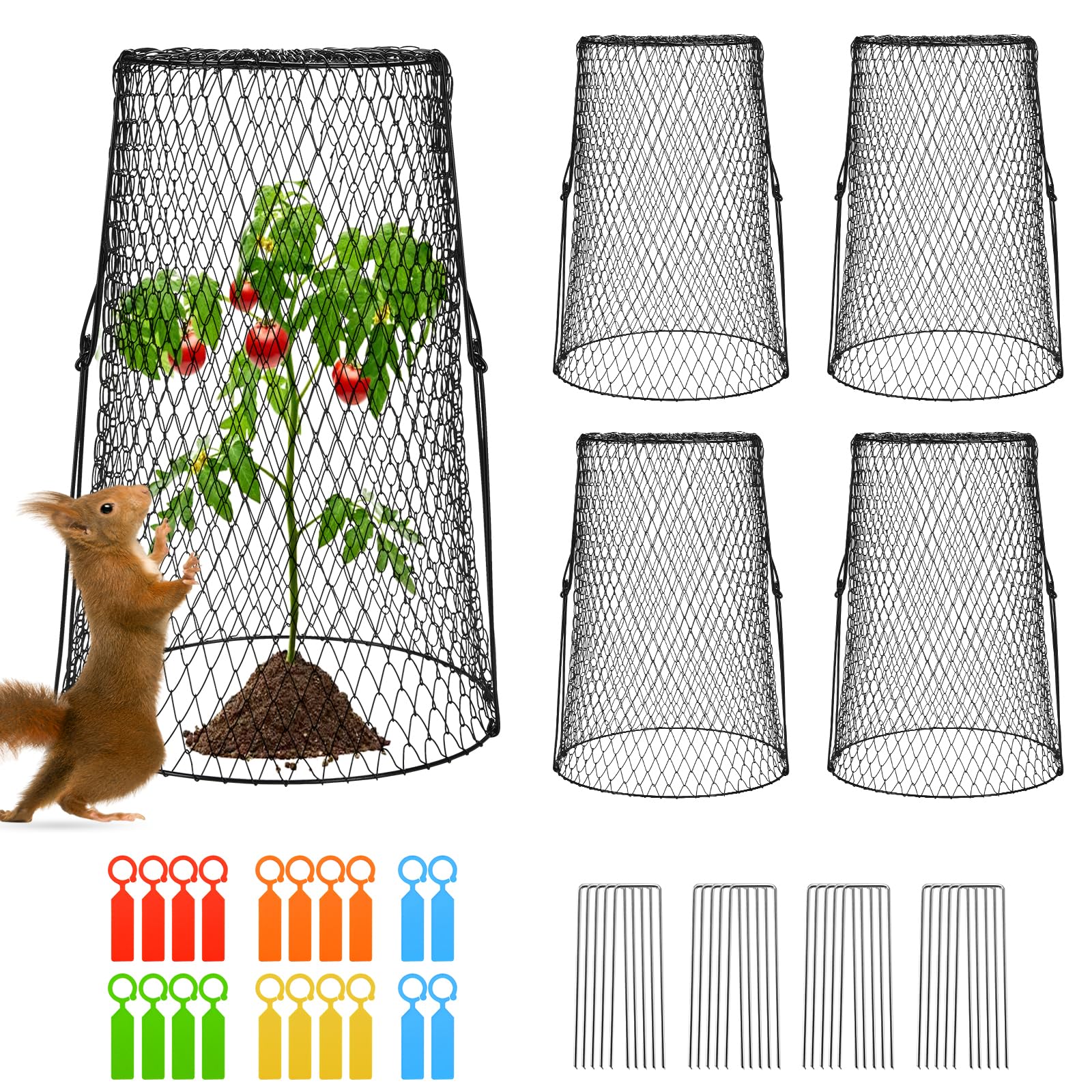5 Pcs 17.7" Tall Garden Cloches for Plants, 5.9" Long Legs Ground Stakes Plant Cages Stackable Storage