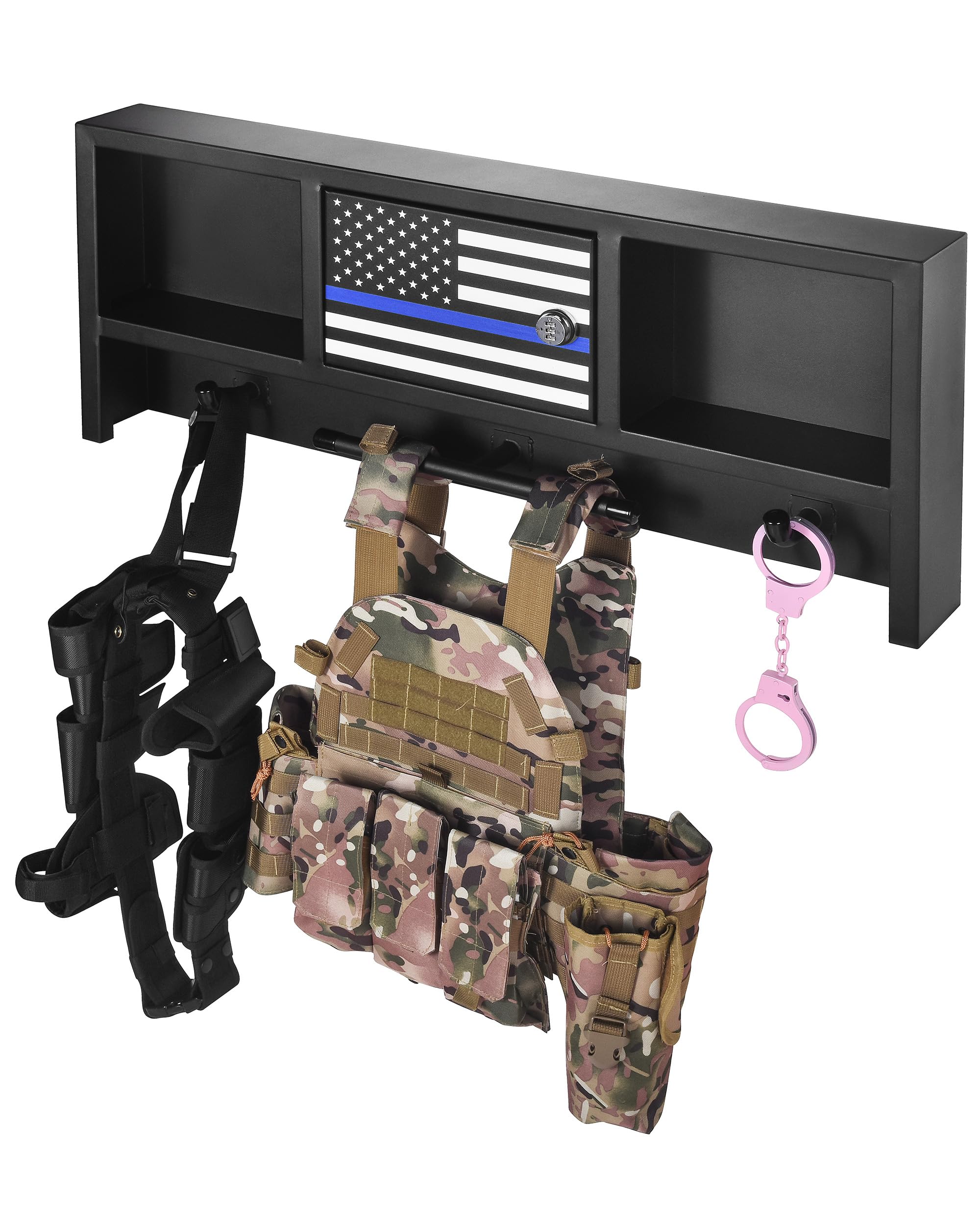 Police Gear Organizer Rack - Heavy Duty Metal Tactical Equipment Storage Stand with Lock, Wall Mount Hooks