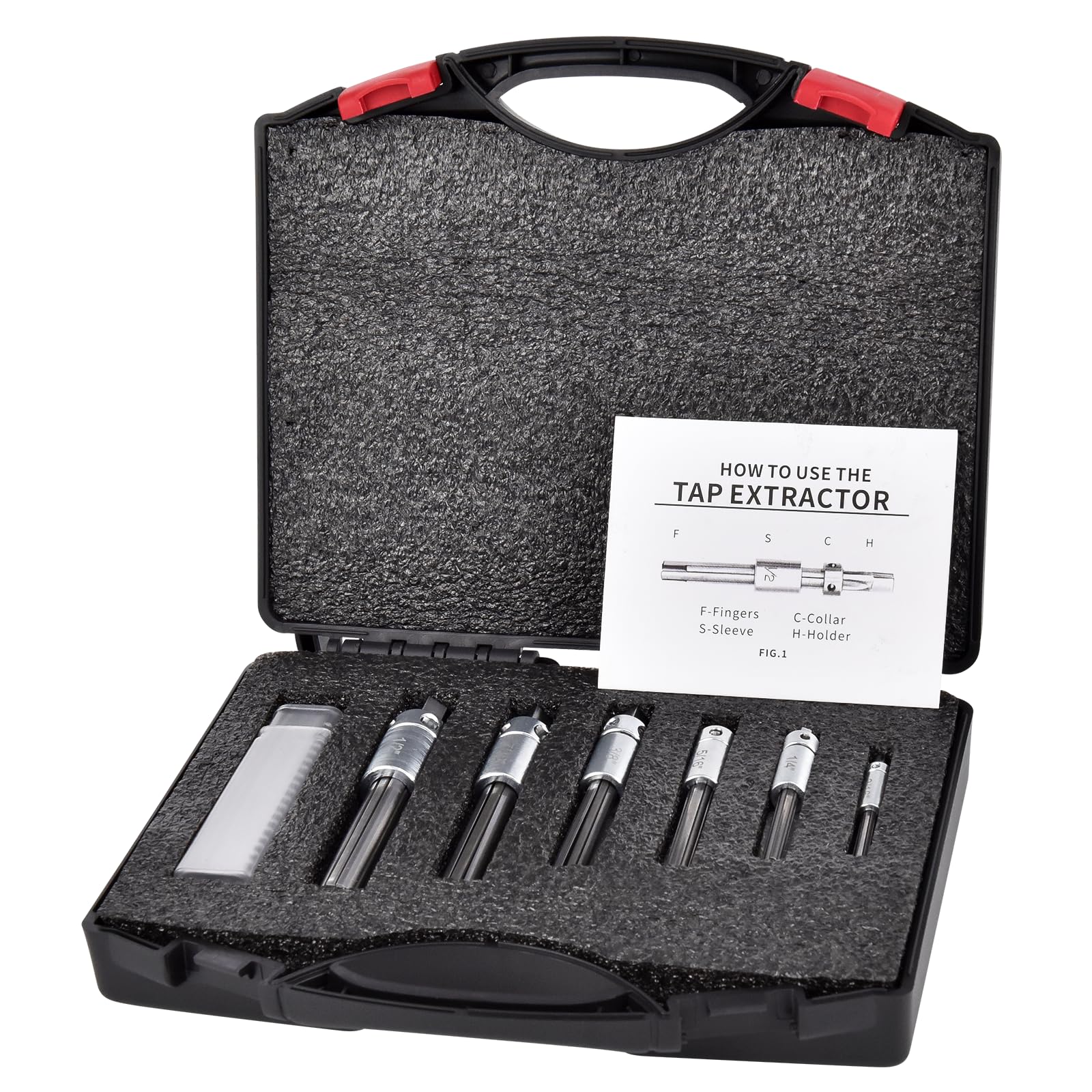 18001 Tap Extractor Tool 6 Piece (3/16"-1/2") 4 Flute Set Broken Thread Tap Manual Remover, with 24 Spare Fingers