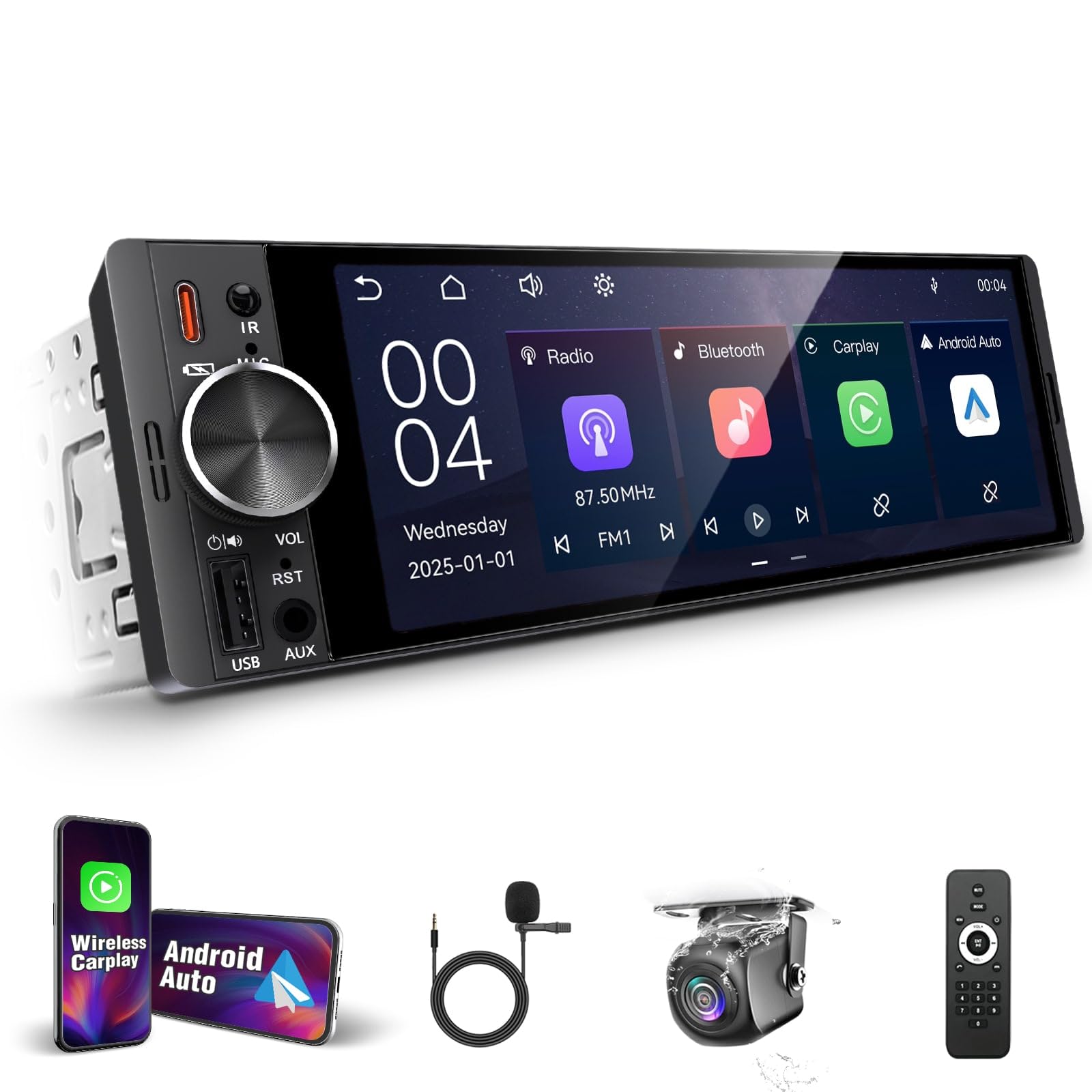 Single Din Touchscreen Radi o with Wireless Apple Carplay & Android Auto,6.36" Incell Touchscreen Radio