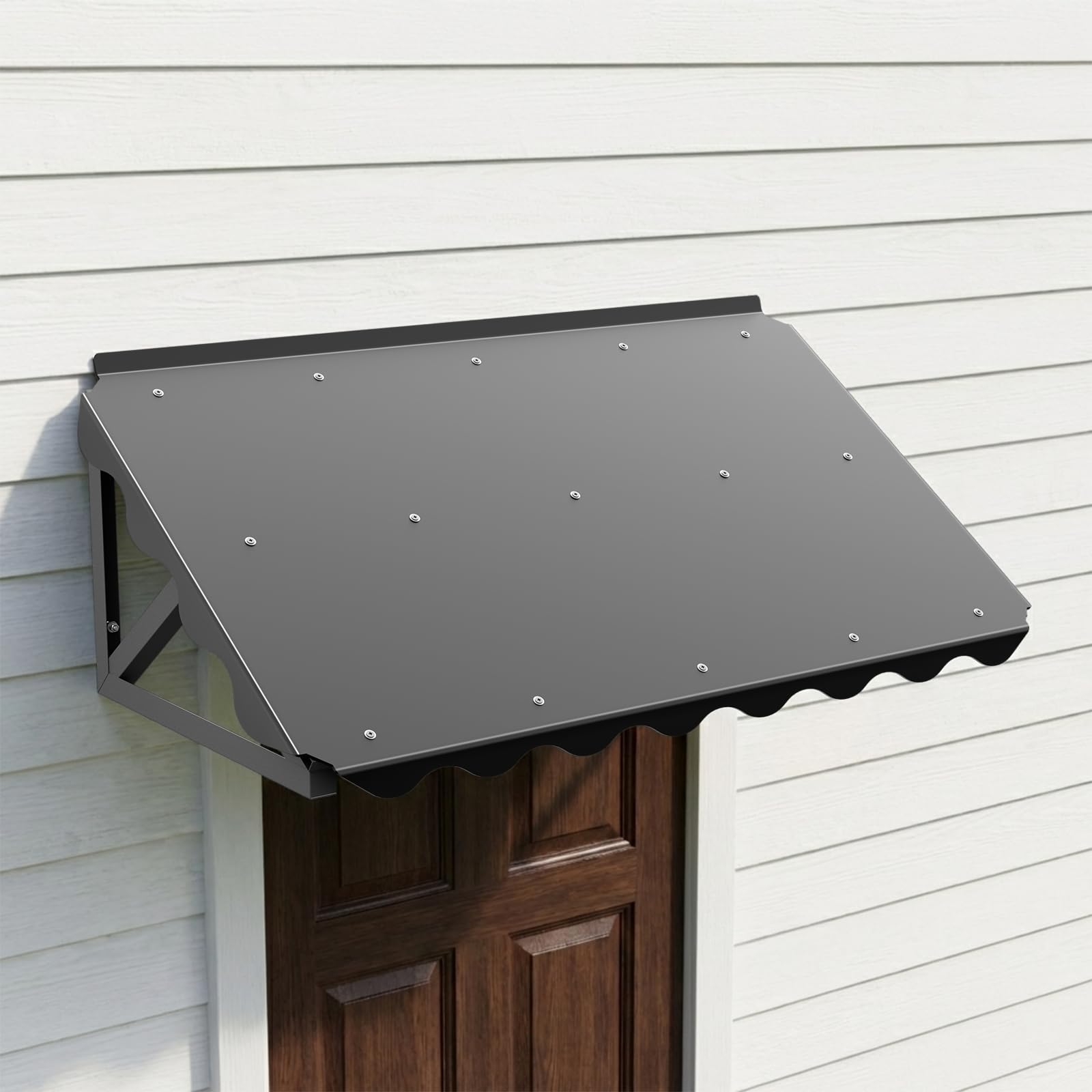 Fixed Metal Porch Awnings w/ Polycarbonate Panel, Heavy-Duty Triangle Steel Patio Awnings for Entrance/Window