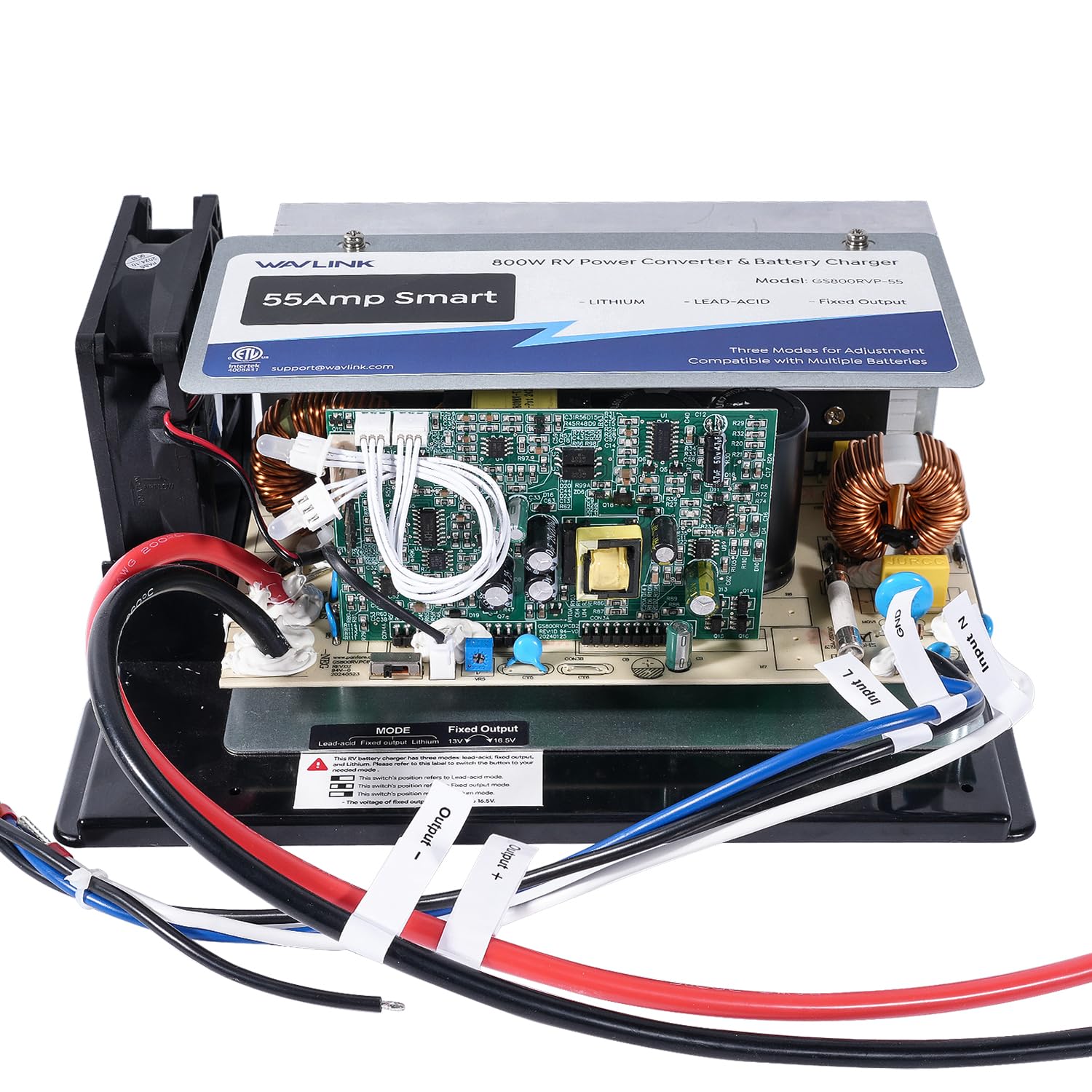 55 Amp RV Power Converter, WF-8955 RV Converter, 120V AC to 12V DC Battery Charger with 3 Smart Charging Modes