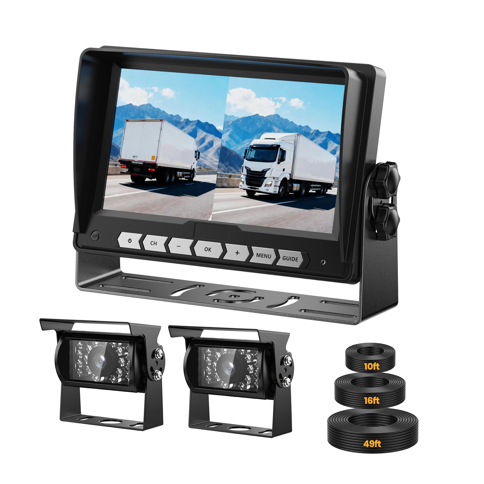 Backup Camera System for Truck, 7-Inch Monitor with 2 Cameras, Waterproof Night Vision