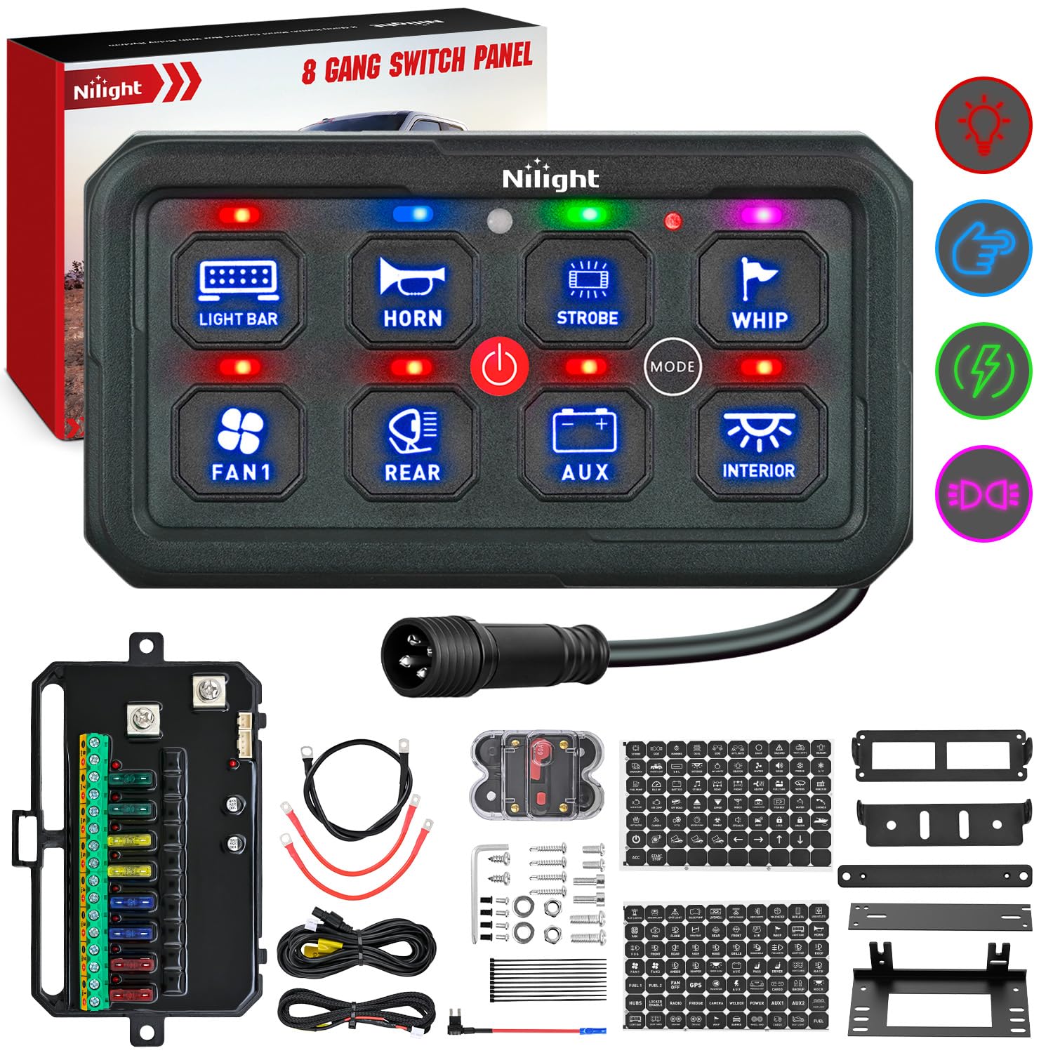 8 Gang Switch Panel Blue Circuit Control Relay System with Fuse Wiring Harness Toggle Momentary Strobe